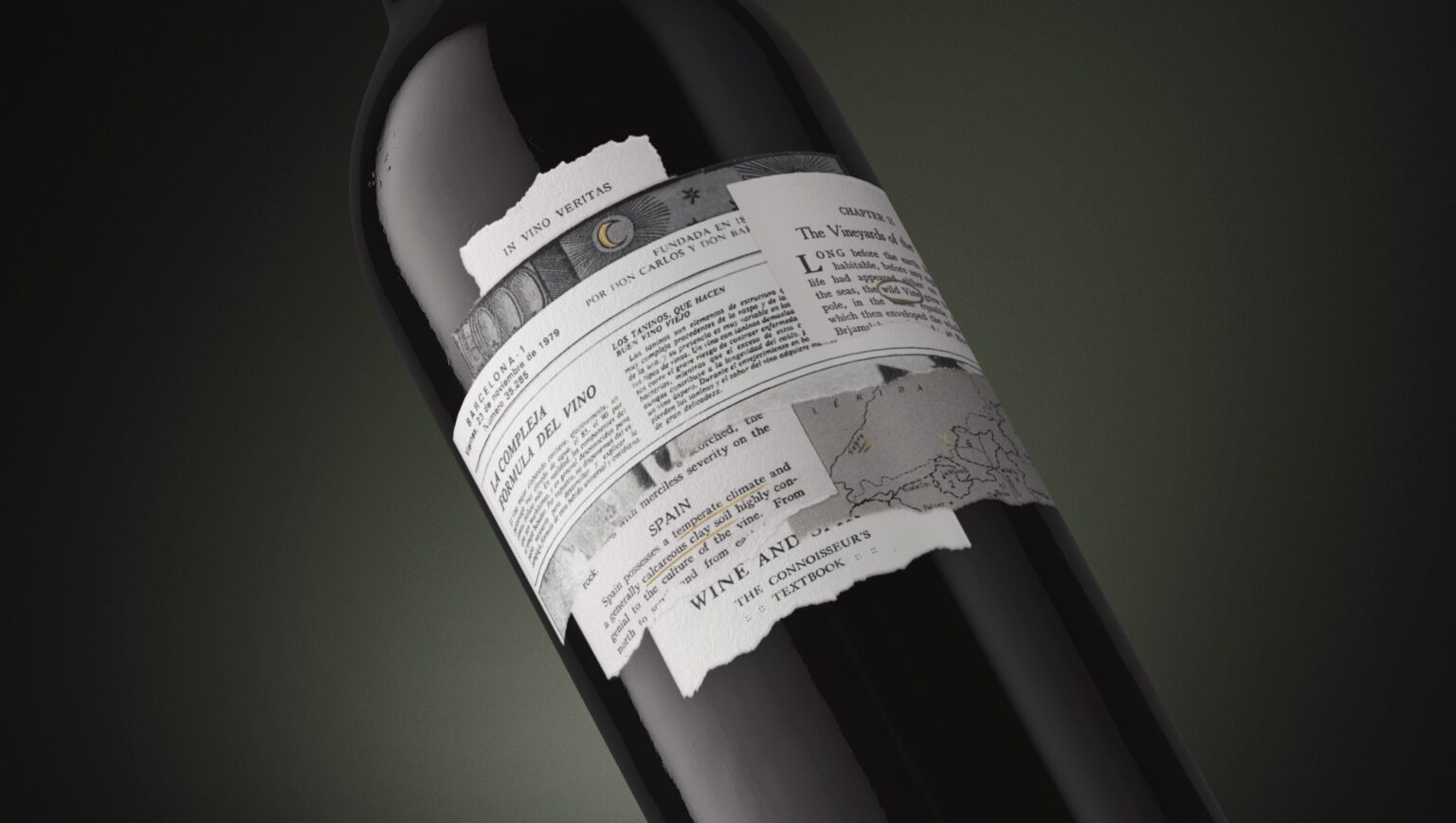 These two very different Catalan wines share a winery; En Poques Paraules. And it is precisely in a few words (or not so few) that they introduce their personalities to the world. The red wine label is a collage of articles, maps and pages from textbooks, while the white’s wrap is inspired by tasting placemats where you doodle and write down all the comments and ideas flowing through your mind.