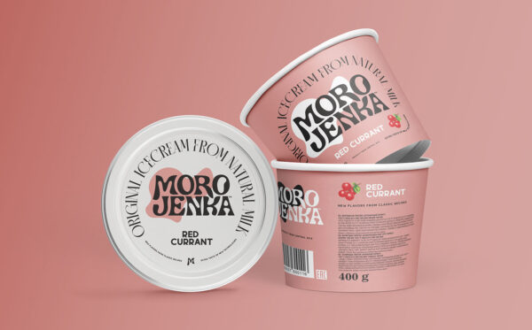 The design is inspired by the Art Nouveau (modern) style. Smooth shapes and classic fonts are great for both classic ice cream recipes and their real forms: streamlined, flexible and delicious. Morojenka design is certainly not an imitation or reconstruction of the XIX century labels. Morojenka is just an inspiration from the past but created with modern graphic design.