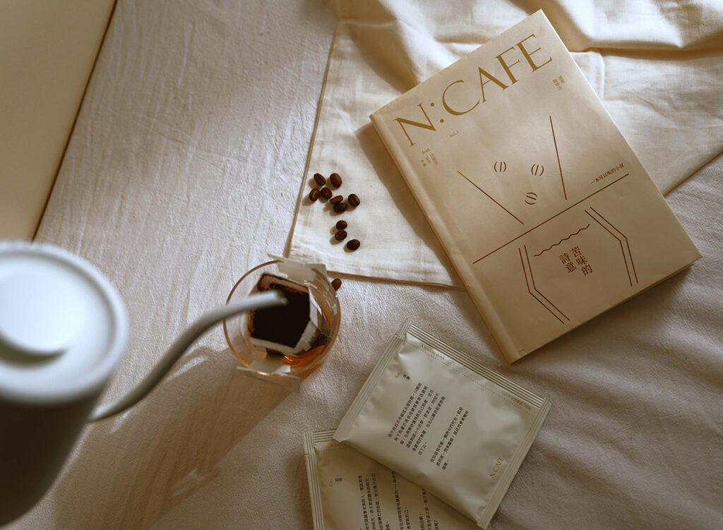 The visual design of “N:CAFE” is based on the concept of “a drinkable book”. The image of brewed coffee dissolved in water is used as the main visual, which symbolizes that consumers gradually enter the world of stories through reading and tasting coffee. Inspired by the form of text creation, the punctuation marks are used as illustrations to combine the visual image of coffee, like a storybook with magic, the text in it is combined into a mysterious cafe invitation with many interesting plots waiting to unfold. Readers enter.