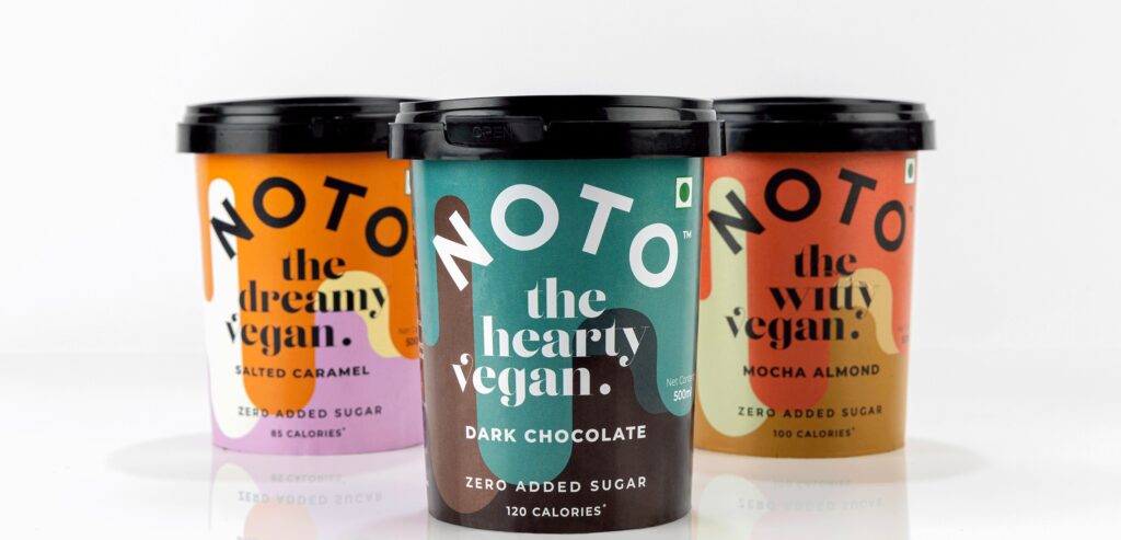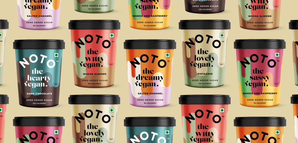Most new-age vegan, or non-dairy ice creams tend to focus on similar attributes. While there’s nothing wrong with showcasing the product on pack, as a new entrant in the vegan ice cream space, it was important for NOTO to establish that they are different from the lot. To begin with, most people who’ve tried the NOTO Vegan range are surprised it is dairy free. The creaminess, the flavours and the overall texture of this range are, dare we say, almost the same as regular milk based ice cream.