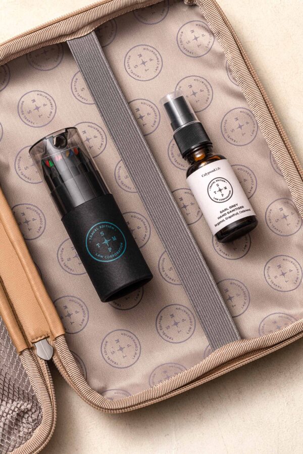 With travel resuming at long last, the 2022 direction for the TSMP Law Corporation’s client appreciation kit is travel edition themed. Working closely with the firm, we conceived the idea of combining practicality with tasteful aesthetics. This year’s gift from TSMP Law Corporation comes in the form of an amenity kit that includes a meaningfully-written appreciation note, a bottle of hand sanitiser, and a pocket-sized notebook, complete with a tube of handy colour pencils for thoughts and doodles that may arise.