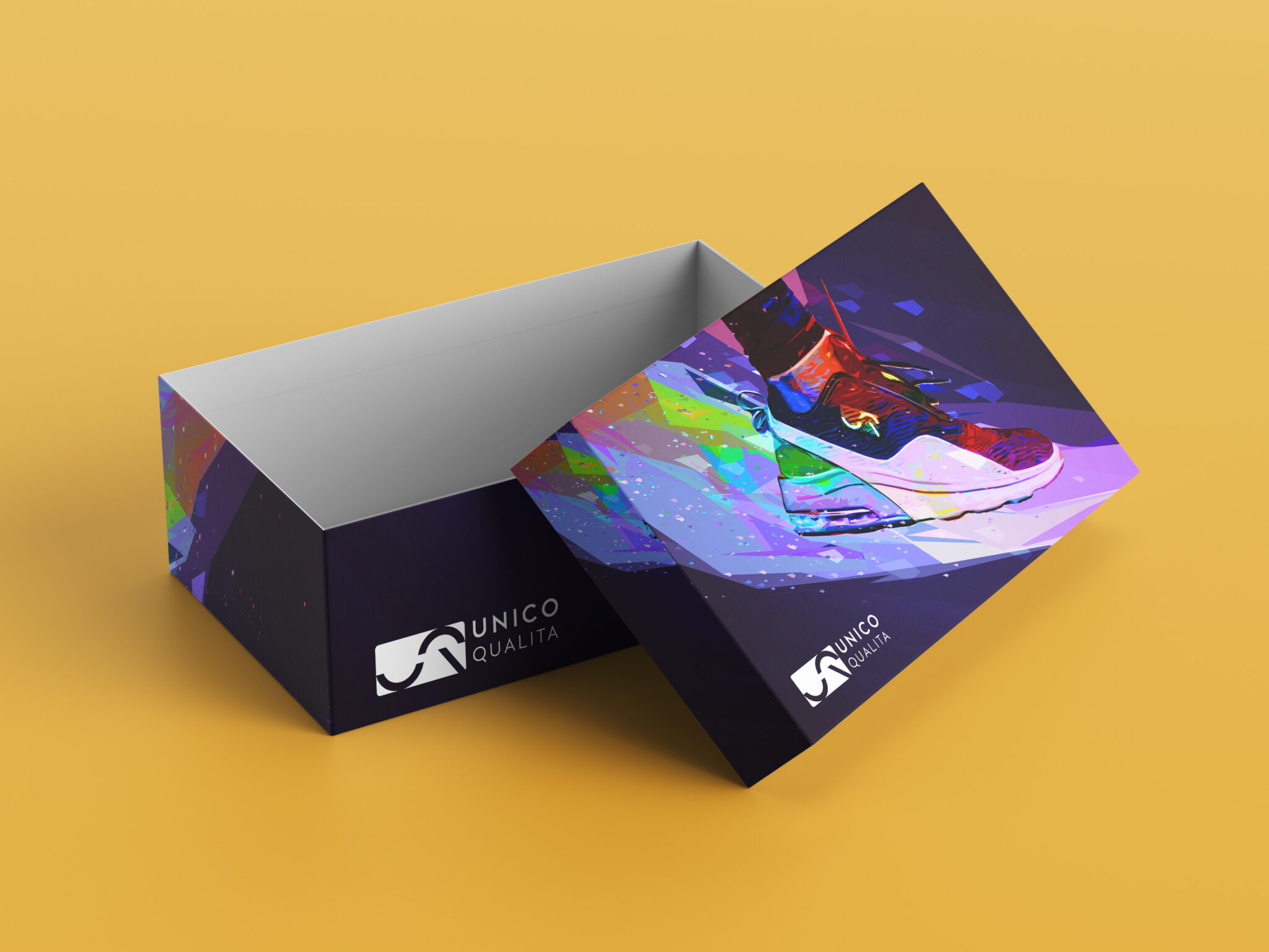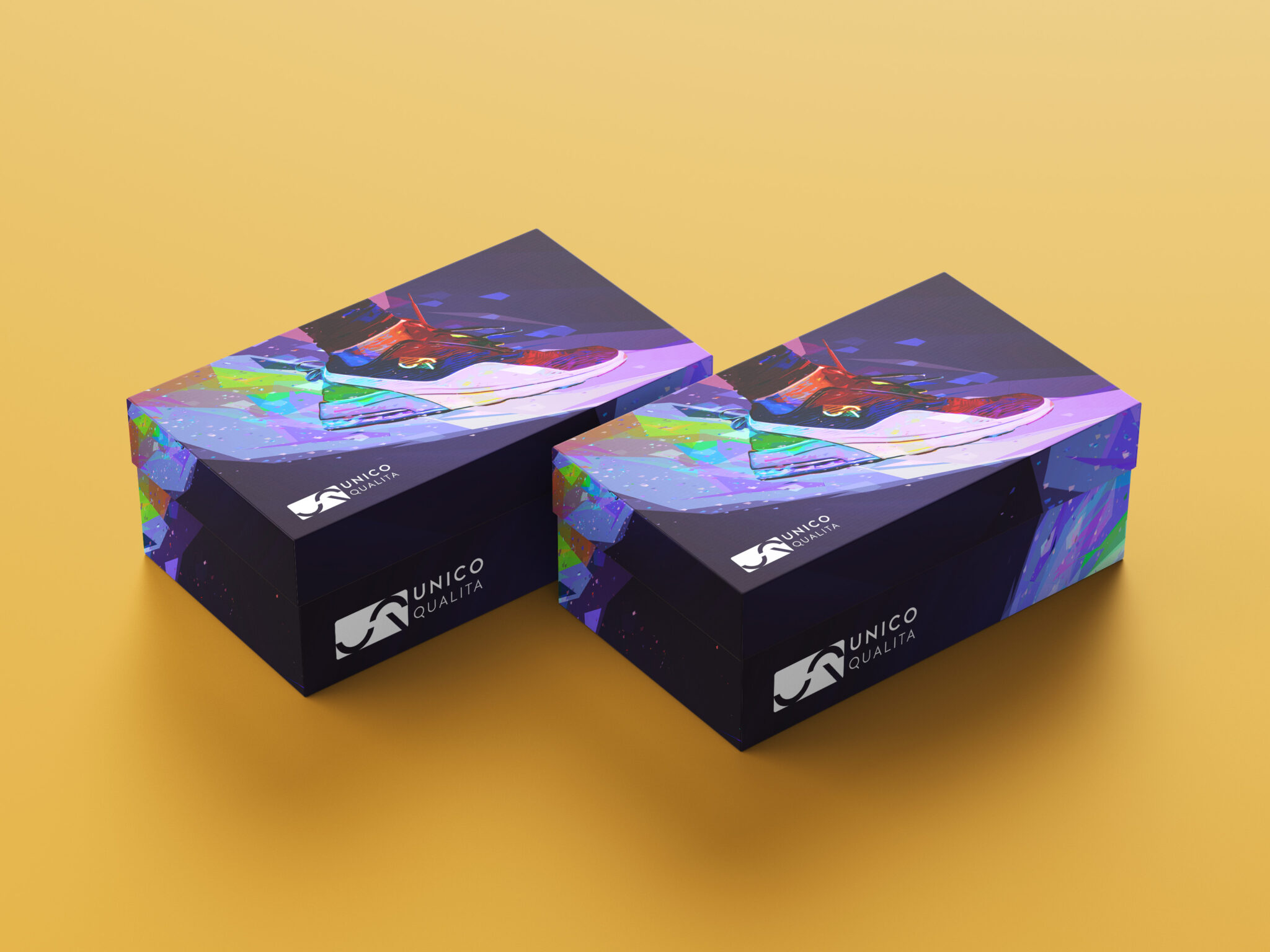 Unico Qualita means ‘One Quality’ in Italian. The customer base of the brand is young people. For this reason, I aimed to express this youthful energy of the brand with contrast and eye-catching colors and illustrations on the box. Since the brand is mainly in the textile sector, it wanted to make a solid entry into the sports shoe sector. Such a study emerged in line with the requested brief.