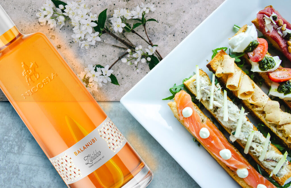 The font used for the product name is a modern and geometric script, which recalls the current characters of Arabic calligraphy and typography. The glass design, customized with the company logo, is exclusive to this product line. Label and glass give a precise identity and an elegant, delicate and precious appearance to these “Malvasia” and “Zibibbo” from Cantine Nicosia, typical products of Sicilian oenology.