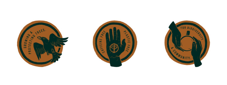 A strong and clear brand name that captures the essence of the brand. We also created a purposefully gender neutral brand identity and distinctive illustrative assets that hark back to the ancient legacy of trees. Handrawn circles communicate the brand purpose, but also highlights circular living and the ecologically inspired blends. To help with product navigation, we developed a bold messaging hierarchy and colour range. The charcoal-drawn trees bring taste appeal to the navigation whilst also evoking the textures of the forest.