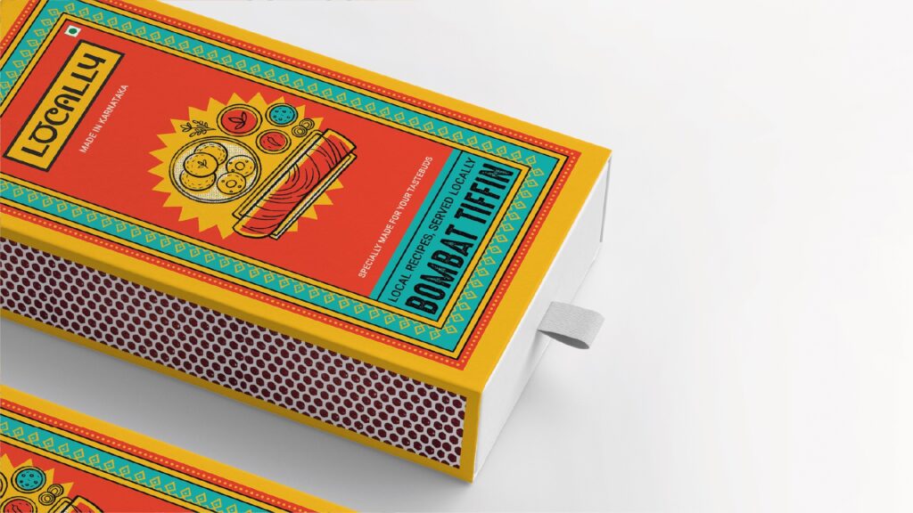 The packaging design resembles a matchbox to represent the flavor of the food inside, which is fiery, tangy, and an explosion of flavor. Historically, matchboxes were first produced locally in the south of India in the 1920s, making them inherently south Indian just like Locally.