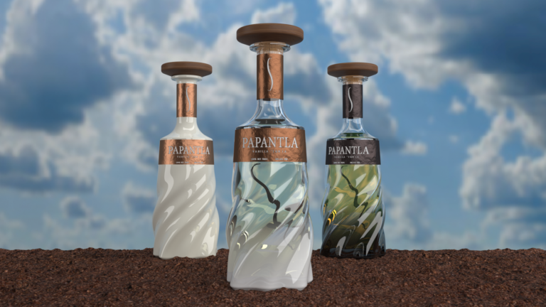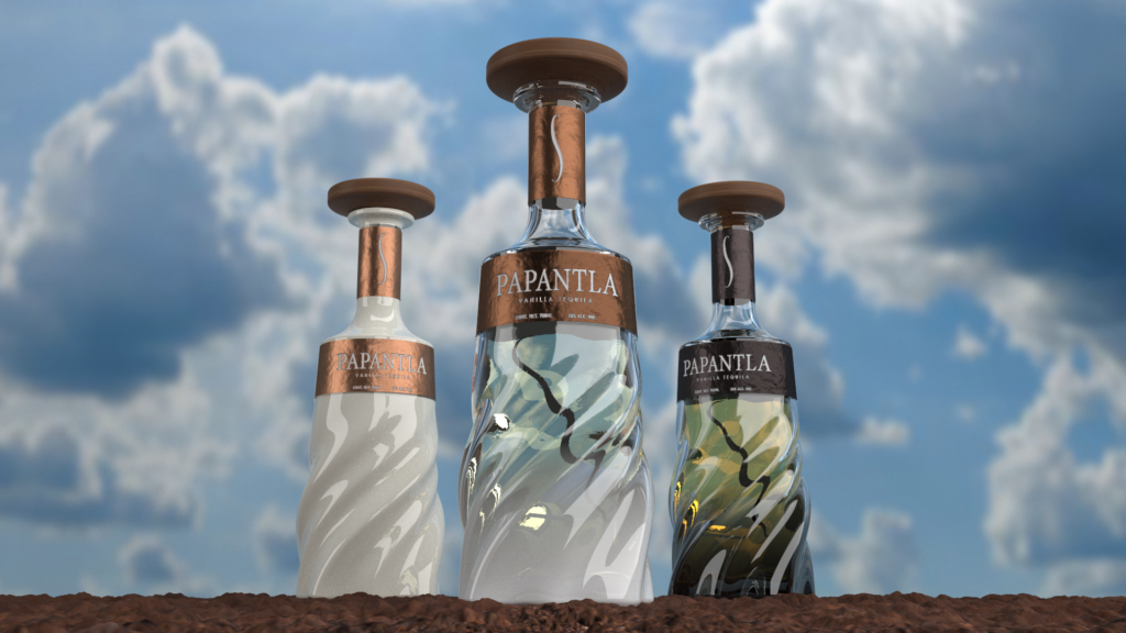 The dancers can rotate up to 13 times according to the 13 skies of the Sun and that these, multiplied by 4 results in 52, the number of a full cycle on the pre-Hispanic solar calendar. That’s why the bottle has a pronounced neck and ends with a wood cap with an extended diameter that alludes to the pole on which the dancers fly, at the bottom, we can see how the body of the bottle has an irregular shape that rotates in its same body and that alludes to the design of the bottle, being a main element, but that does not dominate, but which strikes a balance throughout the proposal.