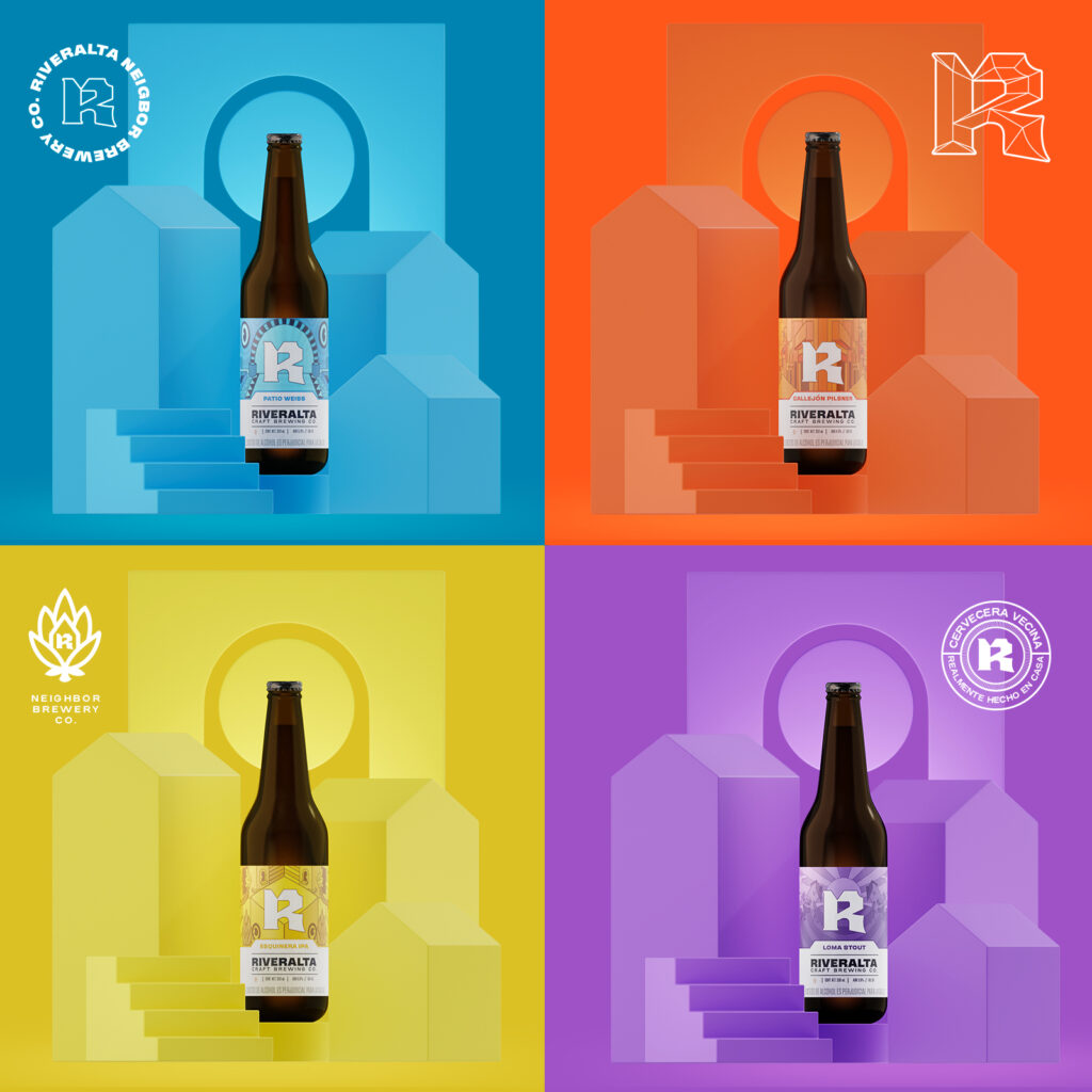 RIVERALTA is a branding project from the city of Armenia, Colombia. from where we were able to build its essence and transmit all its DNA, finding a great idea to transmit it and complementing it with its visual identity and the management of the labels that make references to parts of the neighborhood. Its essence is found in the neighborhood, where it originates and where it is brewed, we call it the ingredient that makes it high (found in the mountains of houses in the neighborhood).