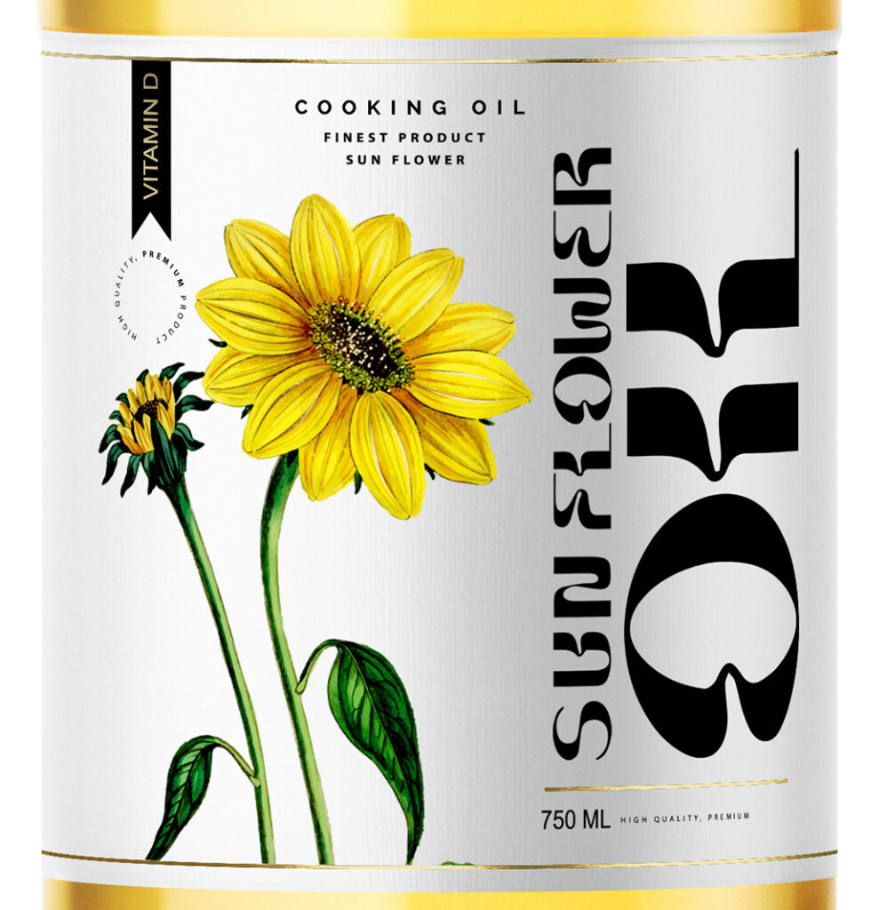 Our goal was to create labels for several different categories, one of which was in the food industry in the oil sector. Therefore, a design should be created that is completely different from the existing #labels in the Iranian market and can compete with the labels outside of Iran. According to the research, the target audience of this category of #foodstuffs was mostly women, so I used the direct image of the sunflower to make women more connected with the product, and I also used high-contrast writing and backgrounds with a special font to make them more attractive.