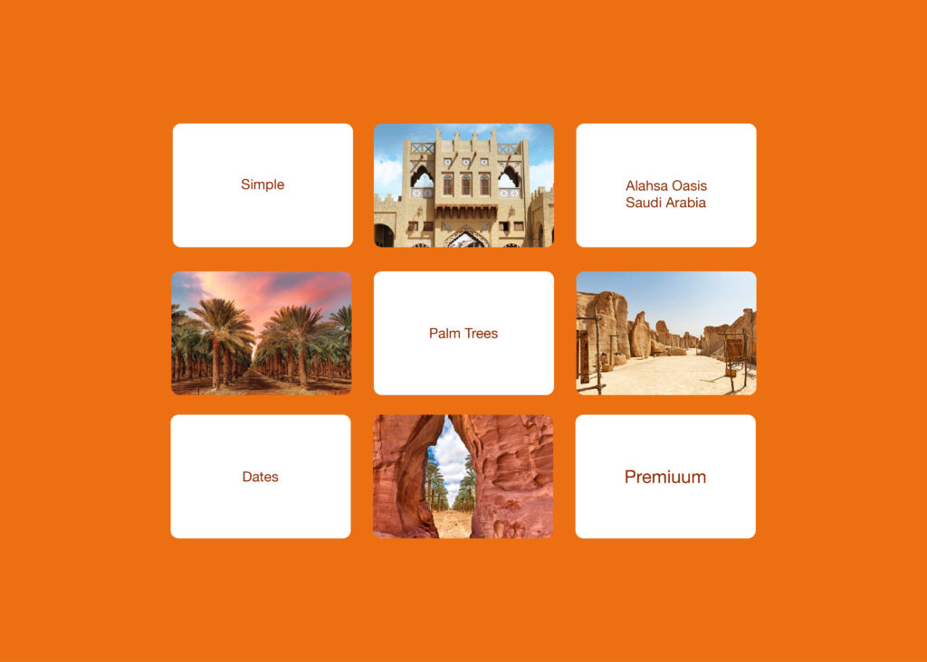 Where the general appearance of the packaging box was chosen for me. The oldest market in the Arab world is the Al-Qaysaria market, a prominent tourist landmark and an economic model for Al-Ahsa Governorate, where Al-Ahsa is the largest oasis in the world for palm cultivation and date production.