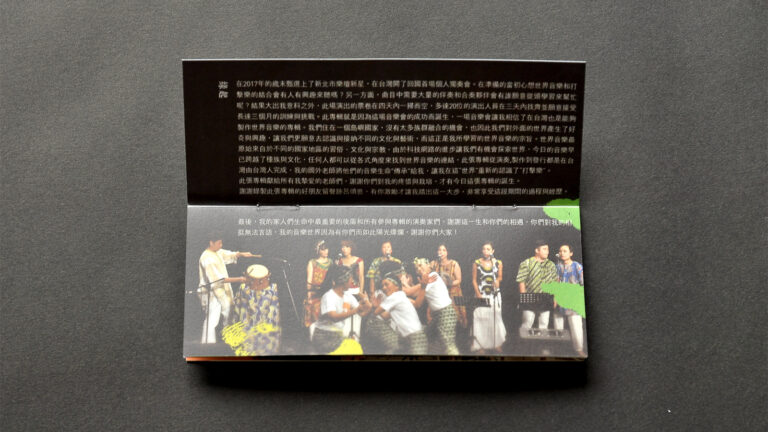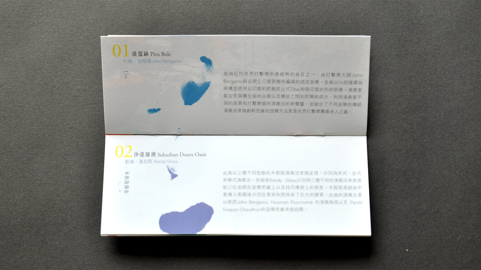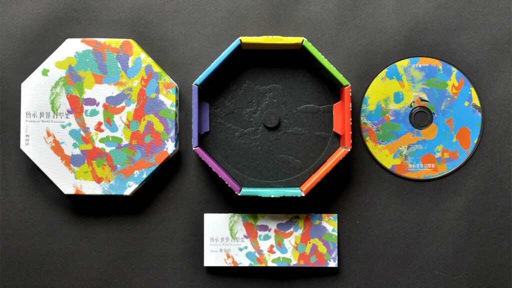 The whole album is a tambourine that can be played. The octagonal box represents the world’s eight sides. The hand is stained with ink, and the sound of Andy’s drums is struck on the paper. Listening to the good rhythm, it seems to be ready to blend into the world of music.
