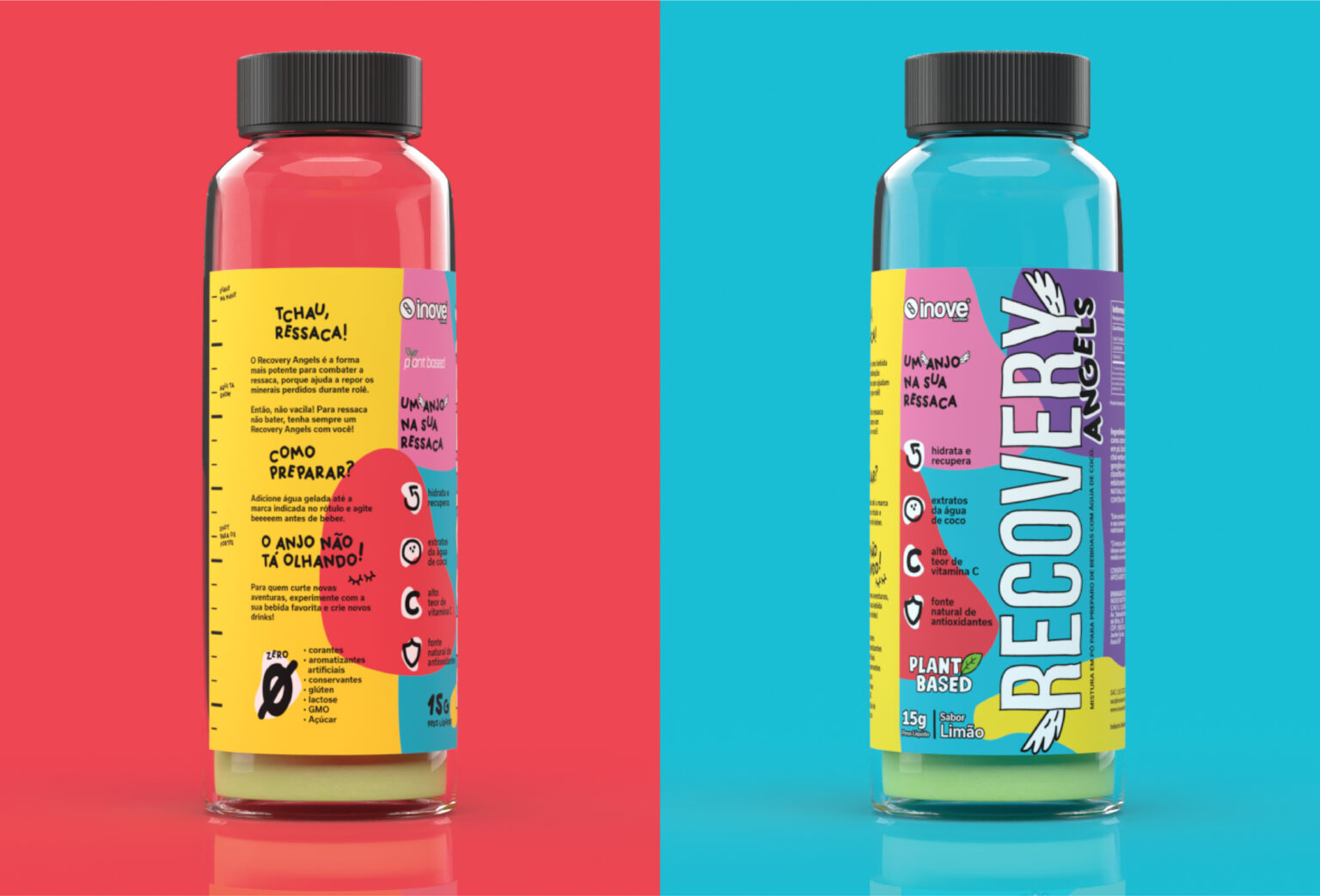 Recovery Angels is an evolution of an existing product from Inove Nutrition®. The original purpose of this product was to recover and hydrate the body post-workout, but it is not just limited to those who practice physics frequently, it also recovers and hydrates people with a hangover. Realizing this new niche, the company chose to redesign the label and present it in a new package.