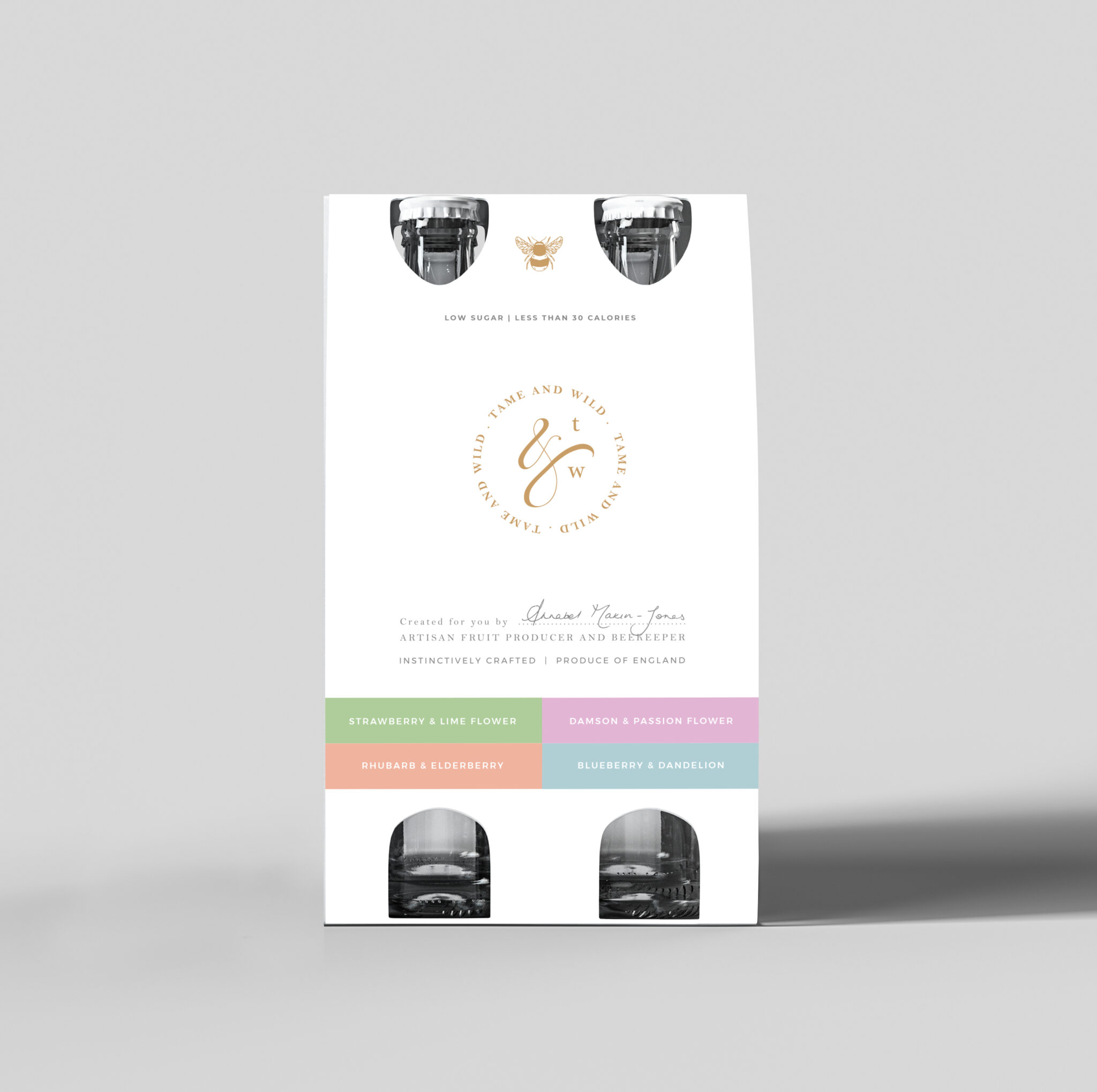 The branding for these new sparkling infusions is inspired by old-world wine labels; it alludes to a complexity of flavour, and celebrates the expertise of producer and grower, Annabel Makin-Jones, who we cast as the Rothschild of carbonated soft drinks. Since its launch, Tame & Wild’s infusions have won multiple awards, and are now distributed nationwide and stocked in major stores including Booths, Selfridges and Fortnum & Mason.