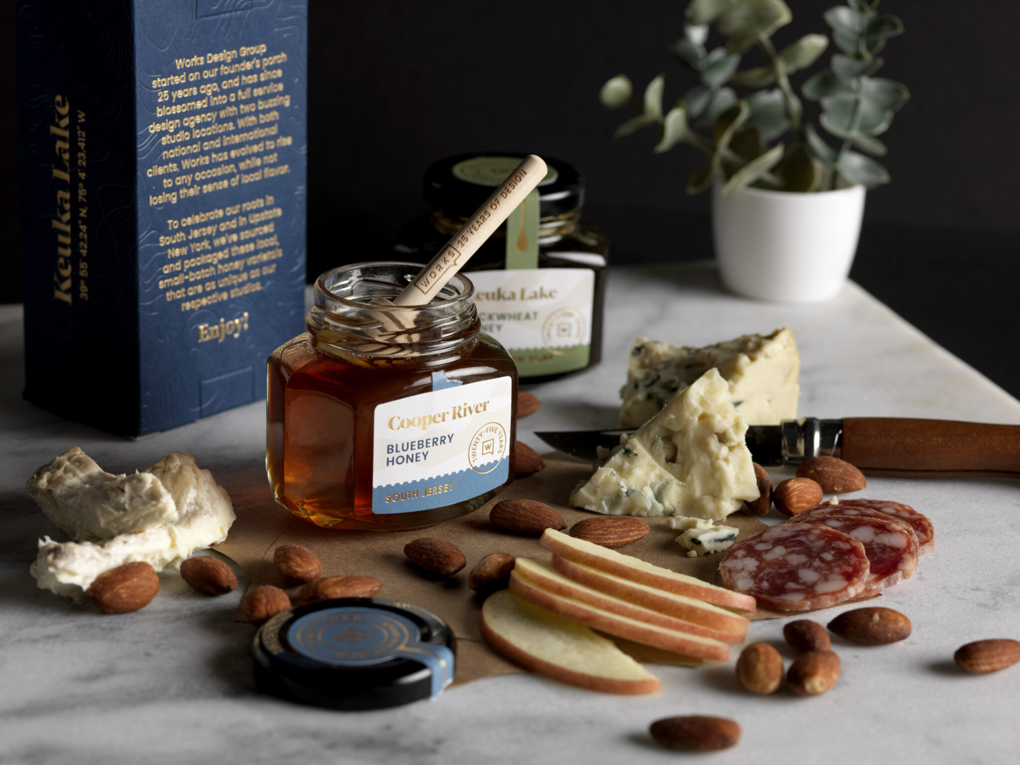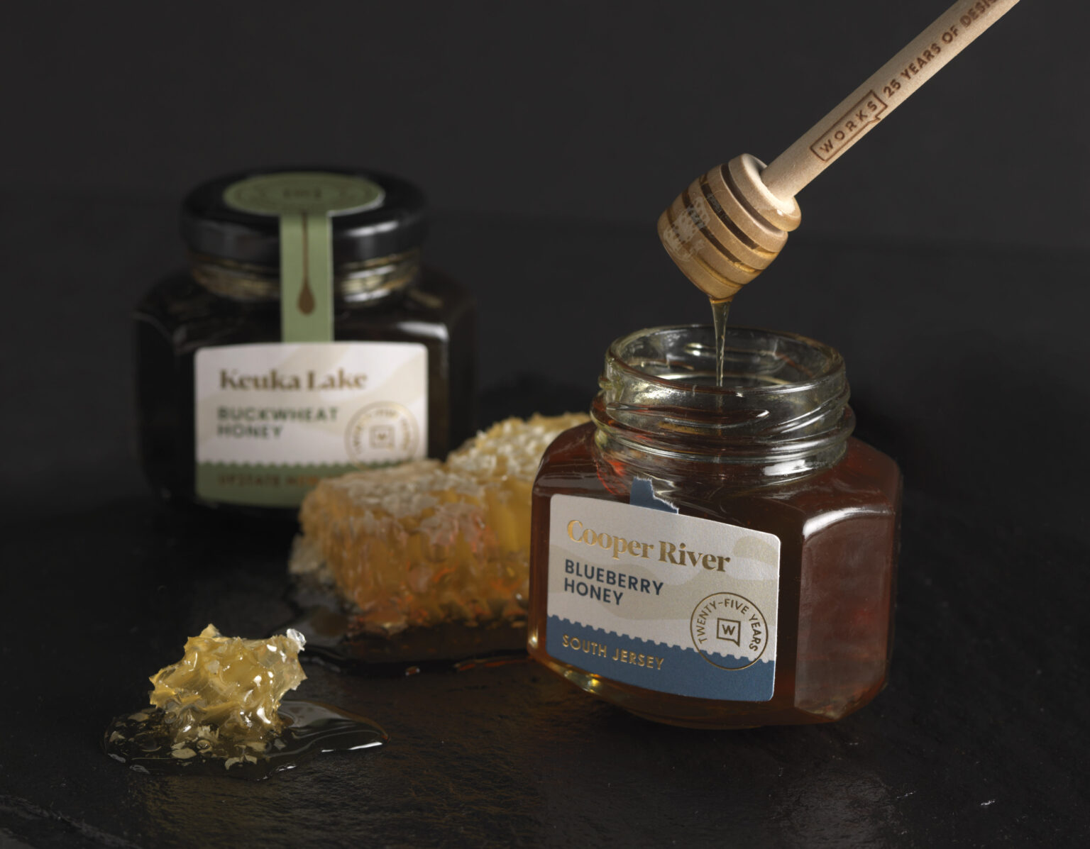 To celebrate our 25th anniversary as a design agency, we wanted to create a holiday gift that will stand the test of time as long as we have. This two-pack contains jars of honey sourced from farms near our offices on the Cooper River in Pennsauken, NJ and on Keuka Lake in Hammondsport, NY. Together, they demonstrate that no matter how the agency has grown and evolved over the years, we have never lost our sense of local flavor.