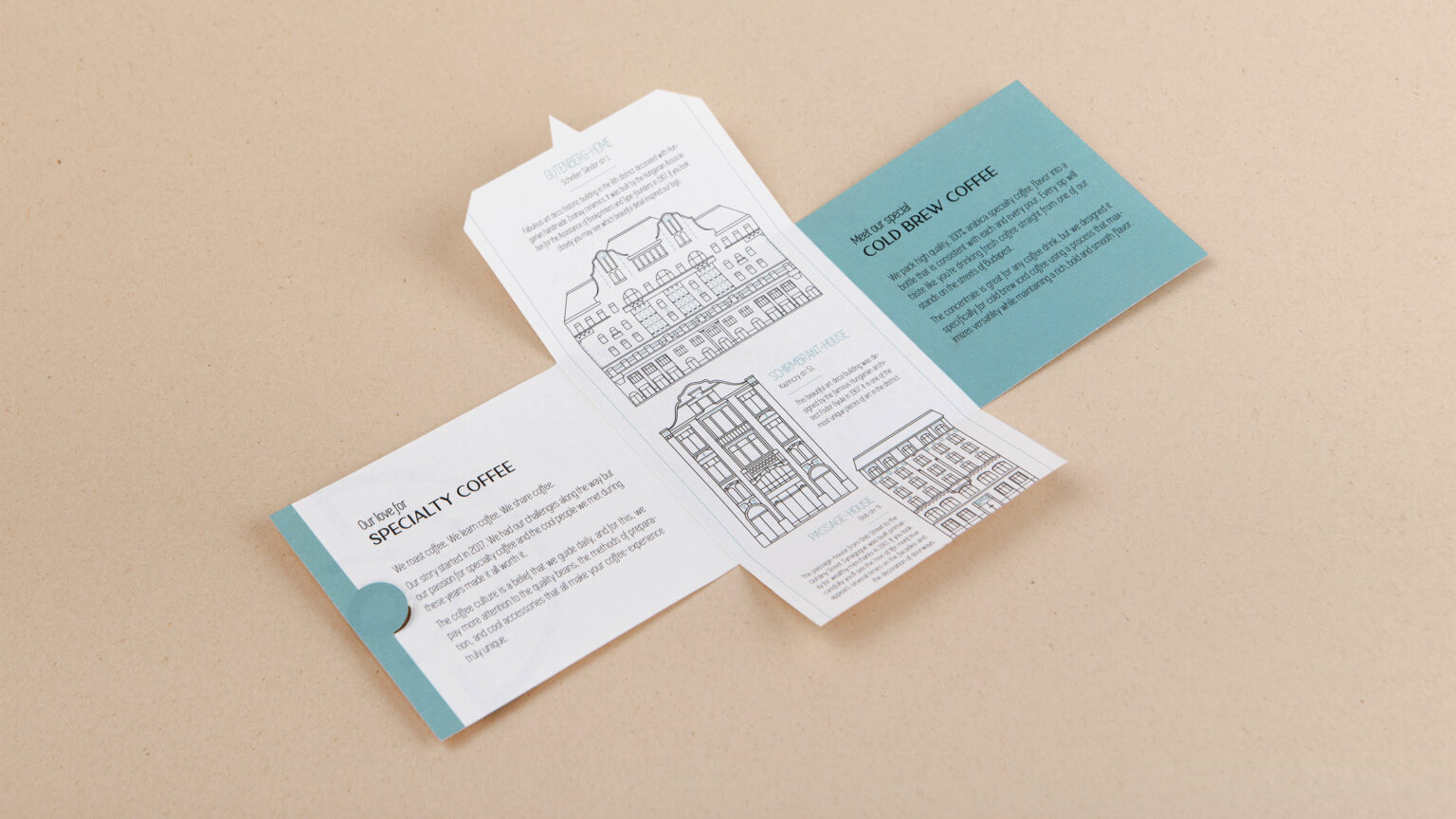 The brand invites coffee lovers to slow down and discover the hidden treasures of Budapest. This concept was carried through to the design of the brand identity and packaging, which use elegant, illustrative imagery. The color scheme of all visuals is mainly limited to the black-and-white contrast, but it also introduces a pop of color: turquoise blue, a characteristic shade of the local art deco architecture. The illustration highlights three art deco palaces from the streets where the Budapest Coffee Stands are located. The logo’s emblem was also inspired by one of the building’s elegant ceramic decor pieces.