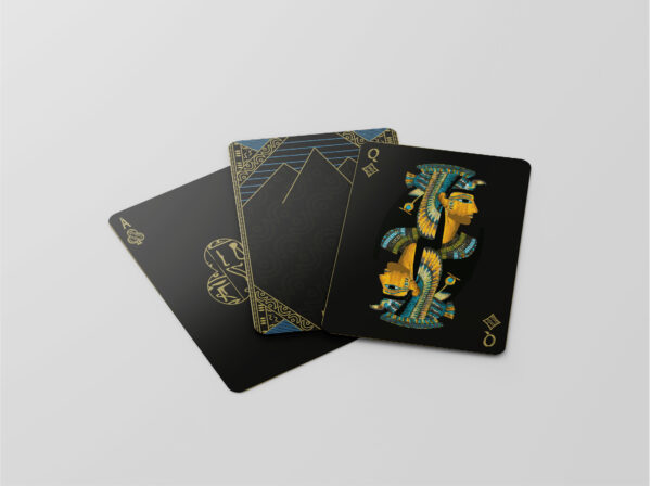 Egyation is simply a luxury ancient deck that was inspired by the ancient Egyptian civilization. All designs and symbols were imported from the ancient Egyptian civilization after conducting many researches. the card used in the printing process is made of matte black 300gsm silk card stock. some parts of the card is printed out using spot UV to be more appealing and unique just as the Egyptian civilization uniqueness.