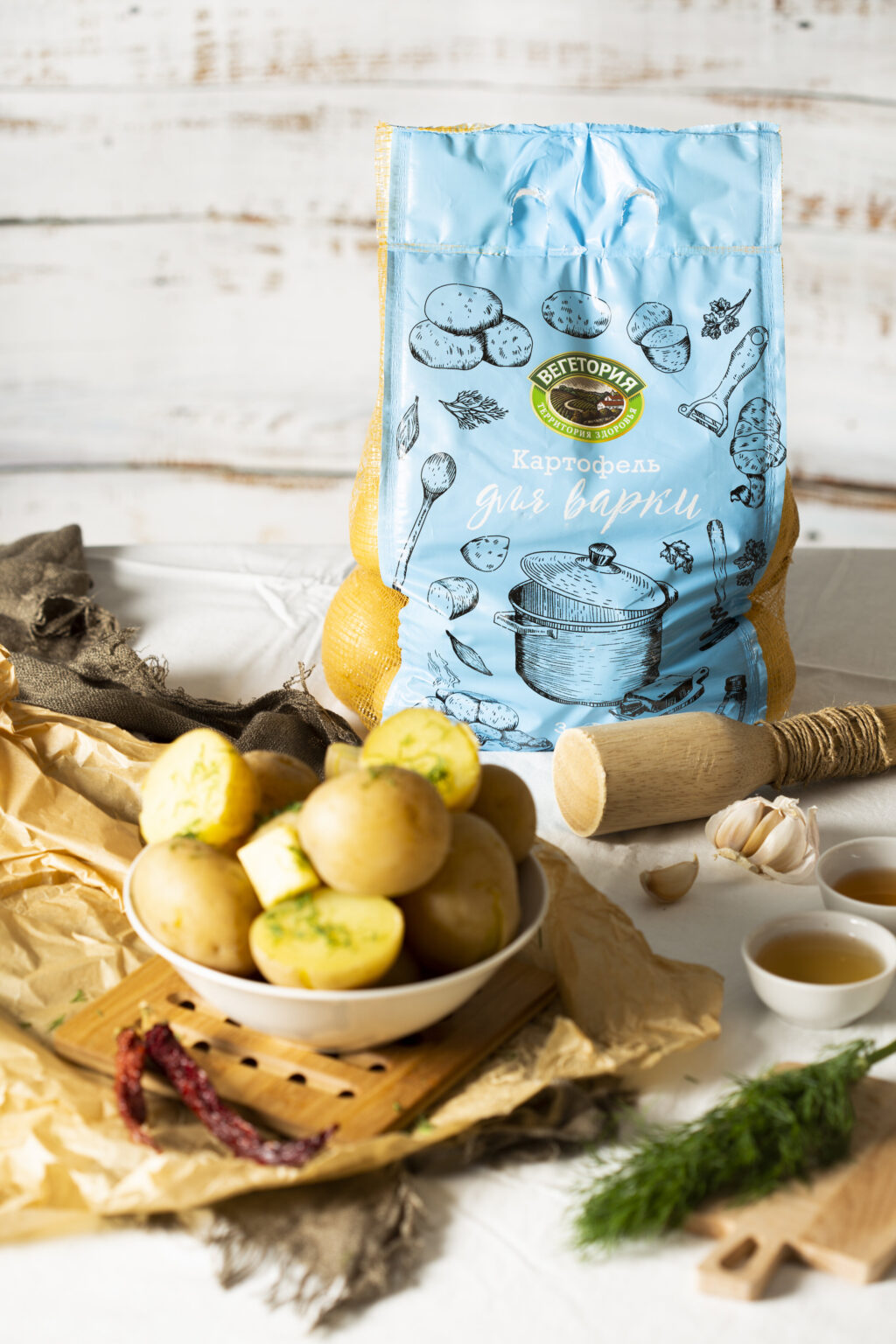 For the rebranding of the “For Boiling” and “For Frying” potato packaging, we chose a style that refers to old cookbooks, where modern photographs are replaced by carefully drawn engravings.