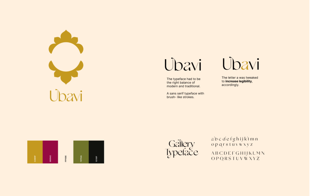 Ubavi’s logo is inspired from the reflective property of the mirror. The motif used on top is reflected at the bottom, letting the negative space depict the mirror. It was important to bring out the essence of years of lineage and craftsmanship. However, it was vital that it had the right balance between modern and traditional, as the target users are in their late 30’s. These are users who are learning and embracing their roots while changing with the needs of today.
