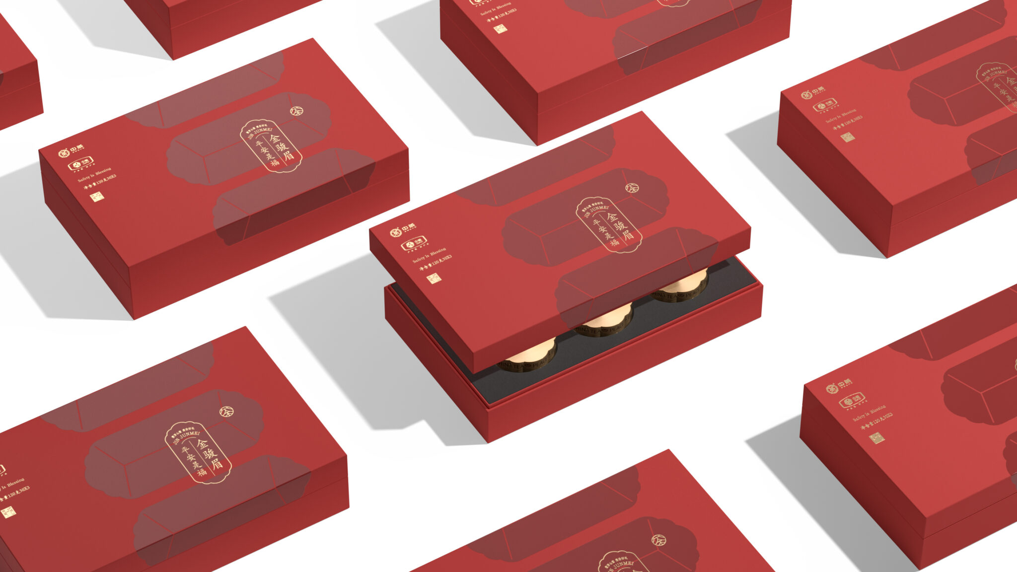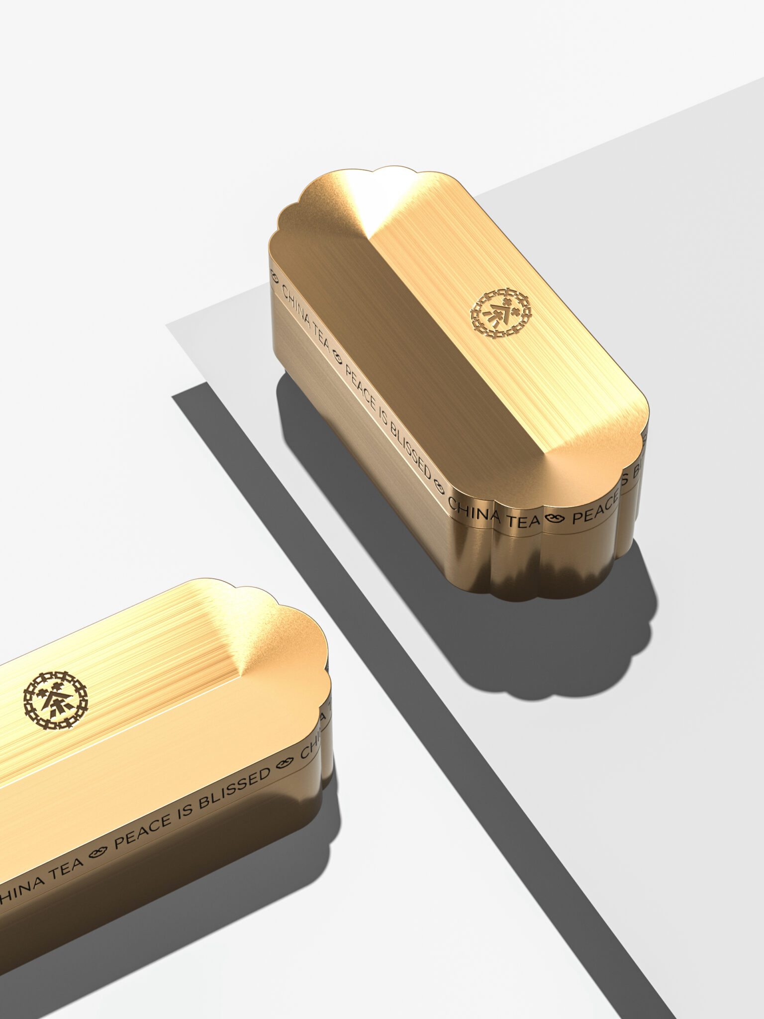 The outer box chooses the Forbidden City Red among the traditional colors as the main color of the overall packaging according to the own tonality of the Ping An series. The opening method chooses the traditional “heaven and earth cover” method, and the golden tea can can be better displayed when it is opened . The design is also very particular about the color matching. The red color of the Forbidden City symbolizes light, exuberance and power. The red and the yellow of the jar complement each other perfectly. The raised pattern in the center not only plays a role of embellishment in the picture, but also enriches the overall design, making the whole simple but not simple.
