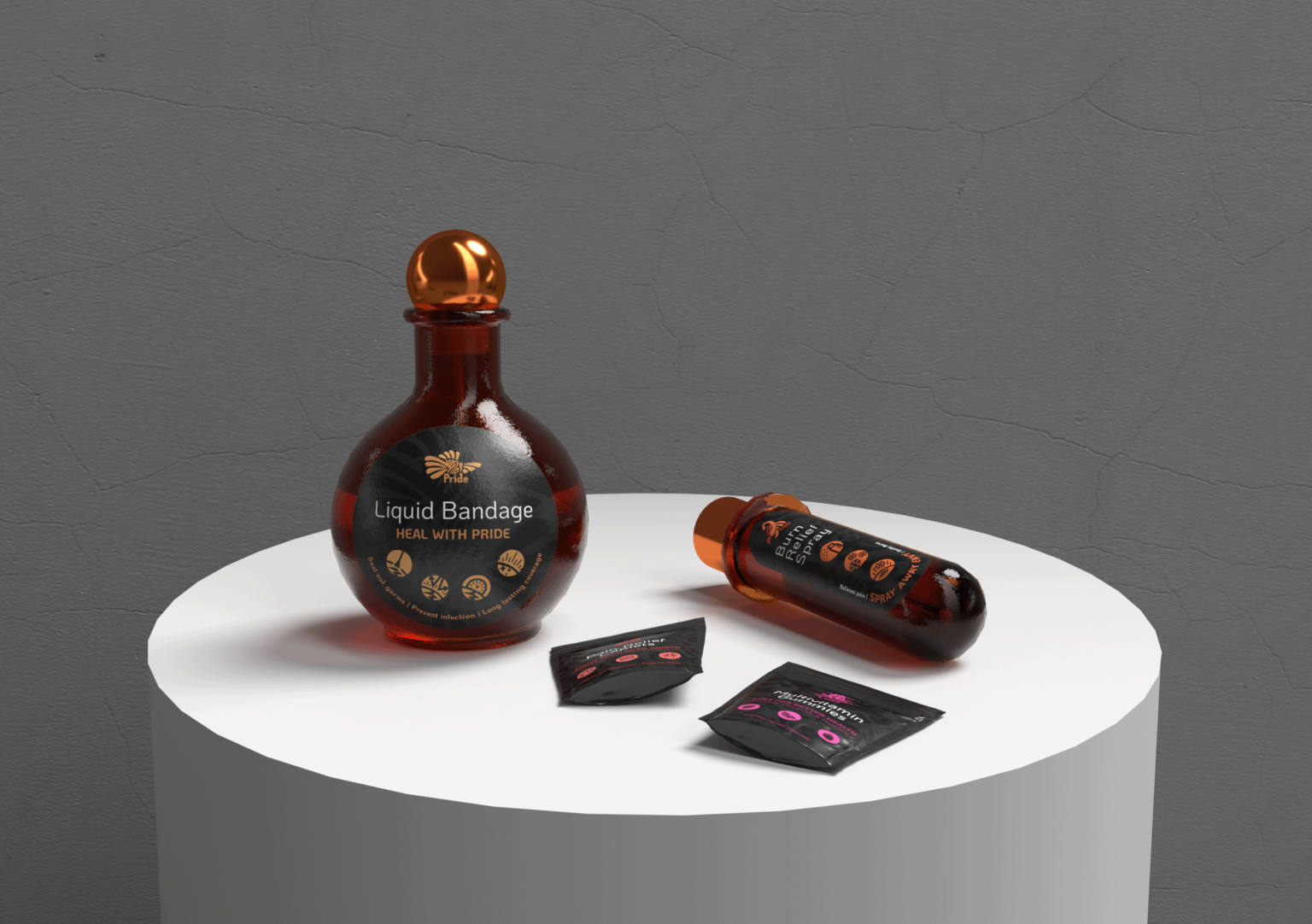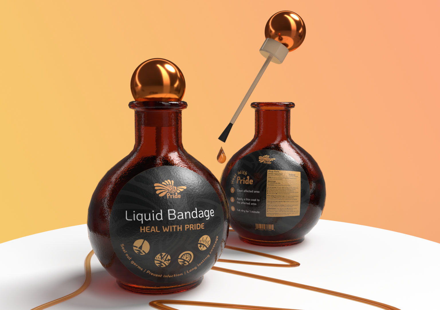 This logo is represented by a lionfish. This fish is very attention-grabbing with large fan-like fins, the look of it represents how someone with the pride characteristic may act. Due to having a large sense of pride, prideful people may hide their wounds to appear tougher or better. Liquid Bandage conceals these wounds as they heal.