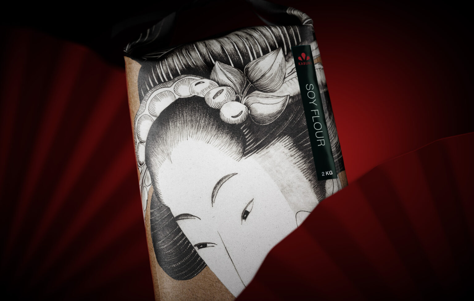 The name of the flour is in honor of the famous Kabuki theater, where a thick layer of flour was also used as makeup. And the logo sign takes its shape from the traditional forehead mark in asian makeup.