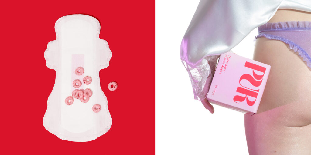 Purpur Pads are your vagina’s new besties. To make them the most awesome pads we’ve cozy-pink color with strict&sharp typography in order to fit visual preferences of millennial’s, gen z’s and their moms. Logo on each side of the box allows even to create a press-wall made of Purpur Boxes and catches attention from any angle. The main secret is hidden inside: open the box to discover beautiful illustration of a vagina, each edition has it’s own. Purpur pads are designed to put period-shame aside and empower the dialogue about menstruation.