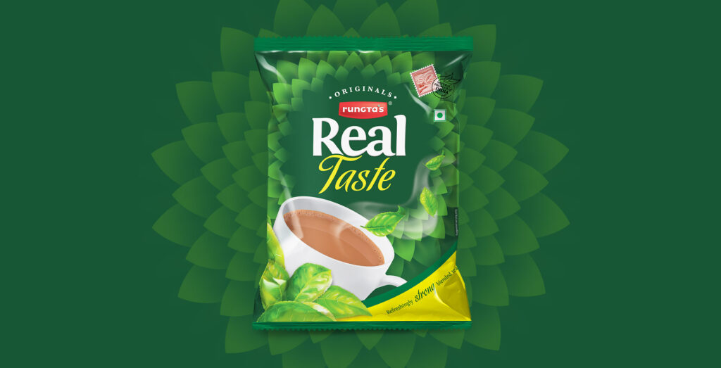 The first step was an architecture to accommodate a wide range of tea blends. The ‘Rungta’ identity is credited as a provider of quality foods. Under the Rungta’s banner, the existing tea brand Real offers specific varieties of products, which have qualities that lend an advantage over generic versions. Variants would be marketed with a focus on their origin.