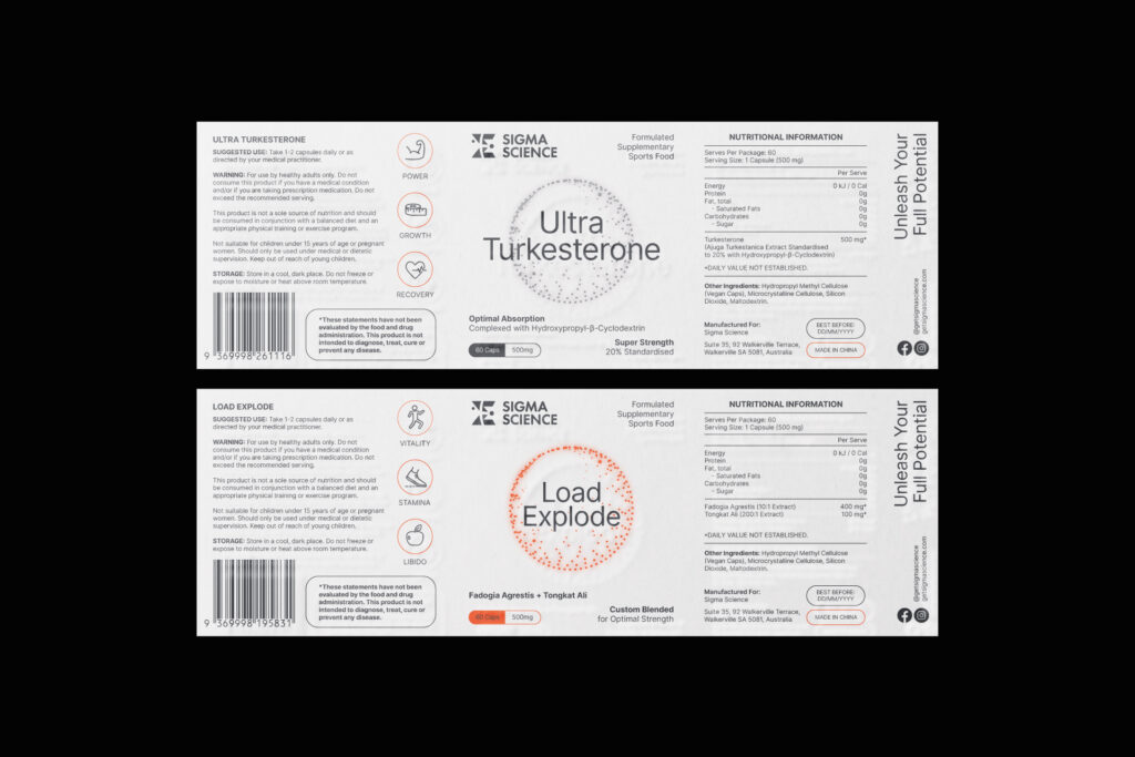 Packaging design for Sigma Science, a custom-curated sports science supplement brand, aims to help men take their physiology and performance to the next level. The design wants to enhance progress and the scientific world with a masculine, modern and clean look. The logo is also refreshed to make it simpler and stronger.