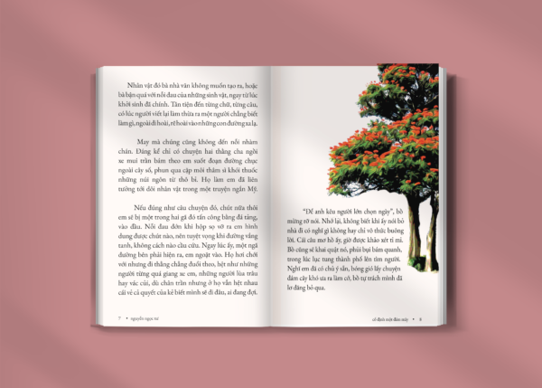 The editorial design gives more negative spaces that the readers feel comfortable to read words and enjoy illustrations. Moreover, the summer flowers (Sò Đo) is the symbol of love and memories, Nguyễn Ngọc Tư gives the reader the feelings of lost with tragic mood. The woman is the bride in her weddings, she makes her decisions that run away with her motorbikes, feelings, her free life.