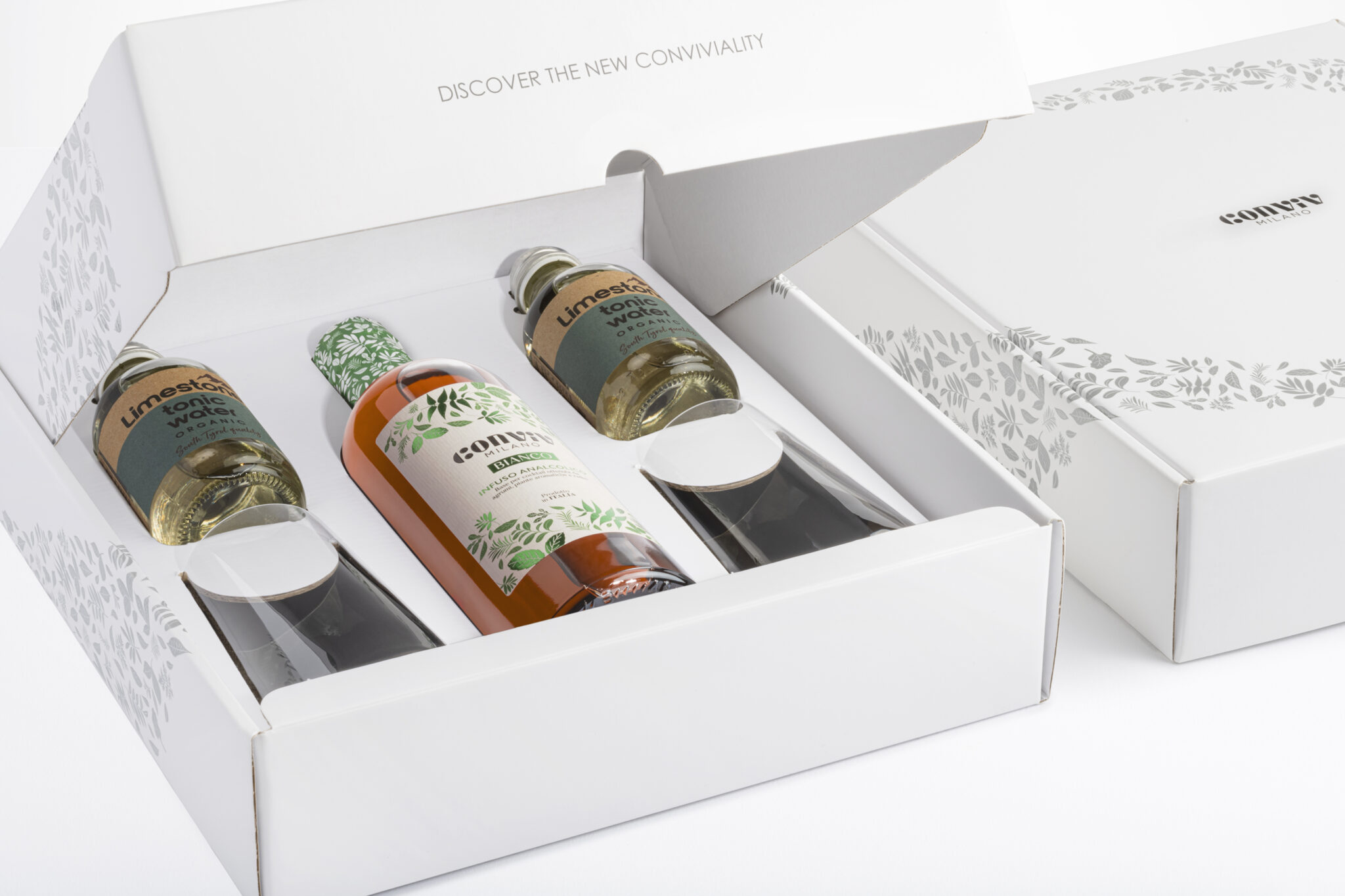 The packaging has been developed to transmit Conviv’s distinctivness and sophistication, a real overturn in the world of mixology, so much so that it helped form the mocktail’s craze growing trend by relying on natural excellences made in Italy. Bartenders may use Conviv as groundwork to revise or create new cocktails, or blend it with tonic water and ice: easy to use, ideal at home, beloved as gift.
