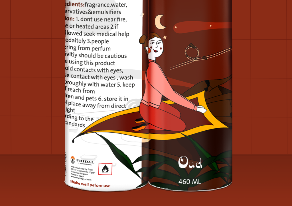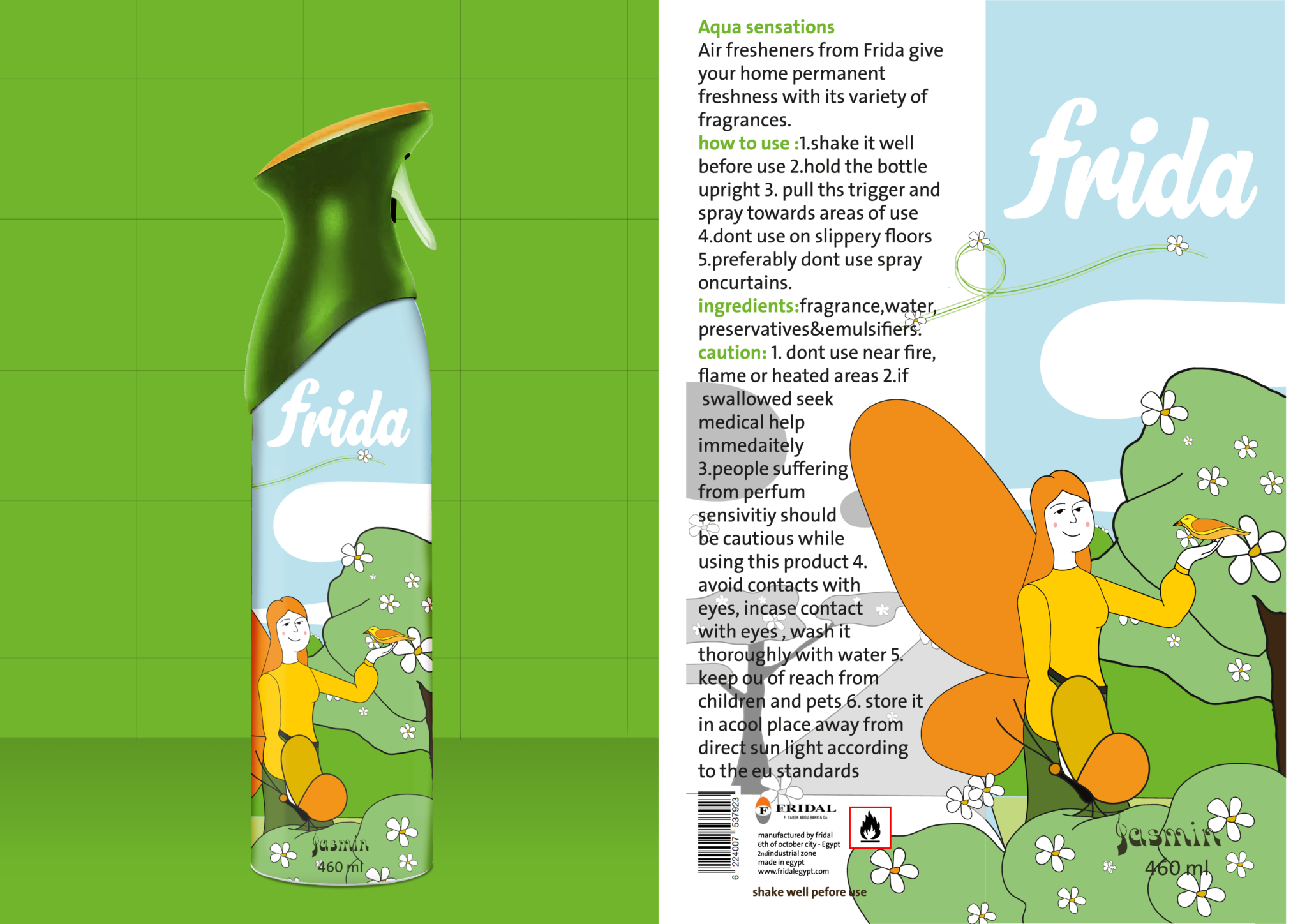 About Frida is an Egyptian company that offers multiple products in the field of hygiene, among the products offered by air fresheners. Through a study project, the product was chosen to redesign the packaging in addition to the logo to increase the product’s attractiveness and distinguish it in a way that targets newly married women during the second decade of the twenty-first century.