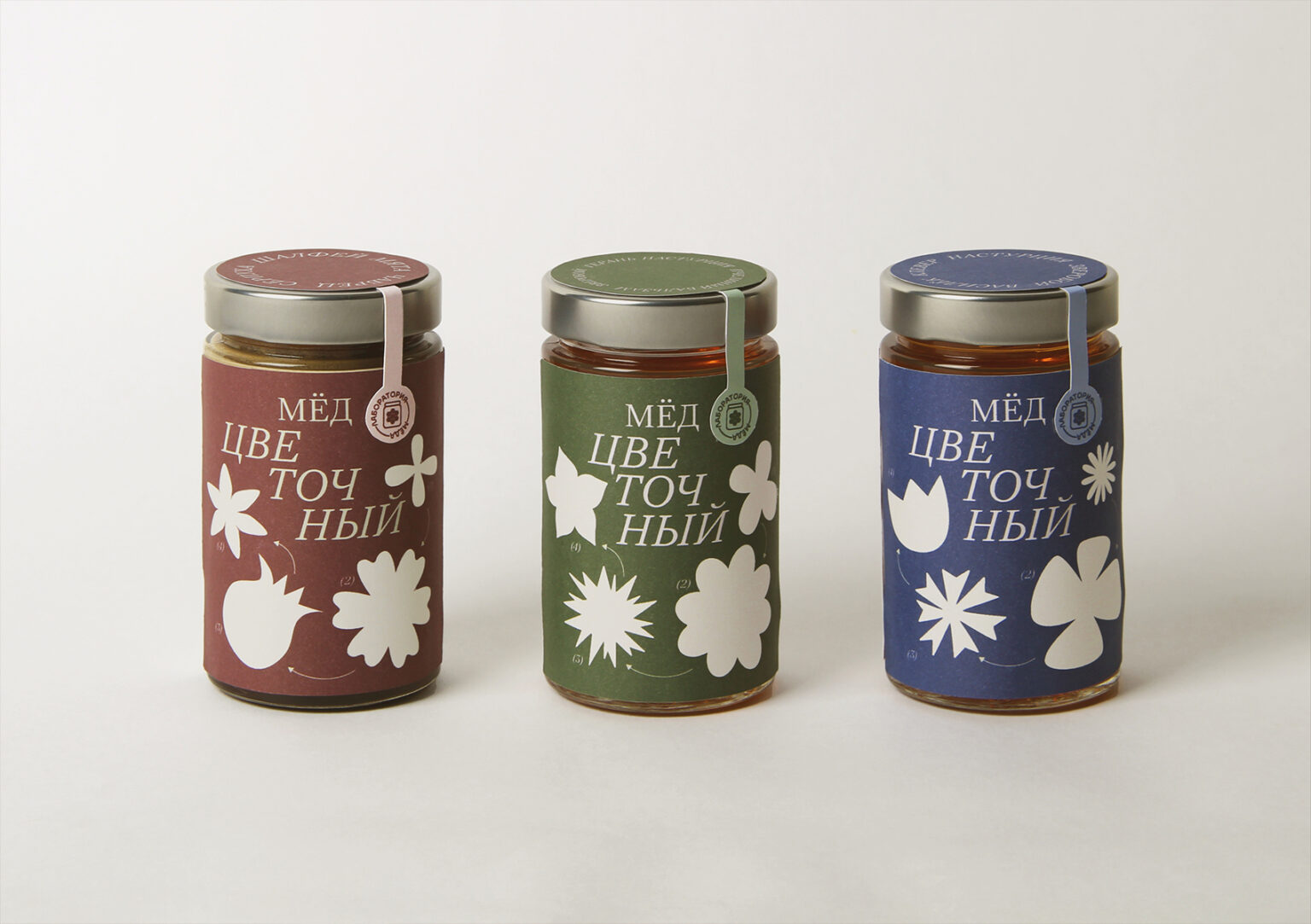 The main idea in design sounds like: bee from flower to flower carefully collect honey and our specialists with the same care from step to step make tasty, healthy and high-quality product.