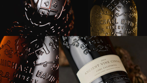 With the desire to pay tribute to the family name and the region of Lodi, this new product release was calling for a visual expression of permanence and heritage. The design answer was to emblazon the family name into the glass itself through an old-world-inspired custom glass design that further signifies the legitimacy of the region and the Michael David family roots.