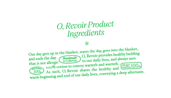 Hour Minute Seconds worked on a renewal design under the concept of “Memories of the Moment” to convey a deep lingering impression at the beginning and end of our day through O,Revoir bedding.