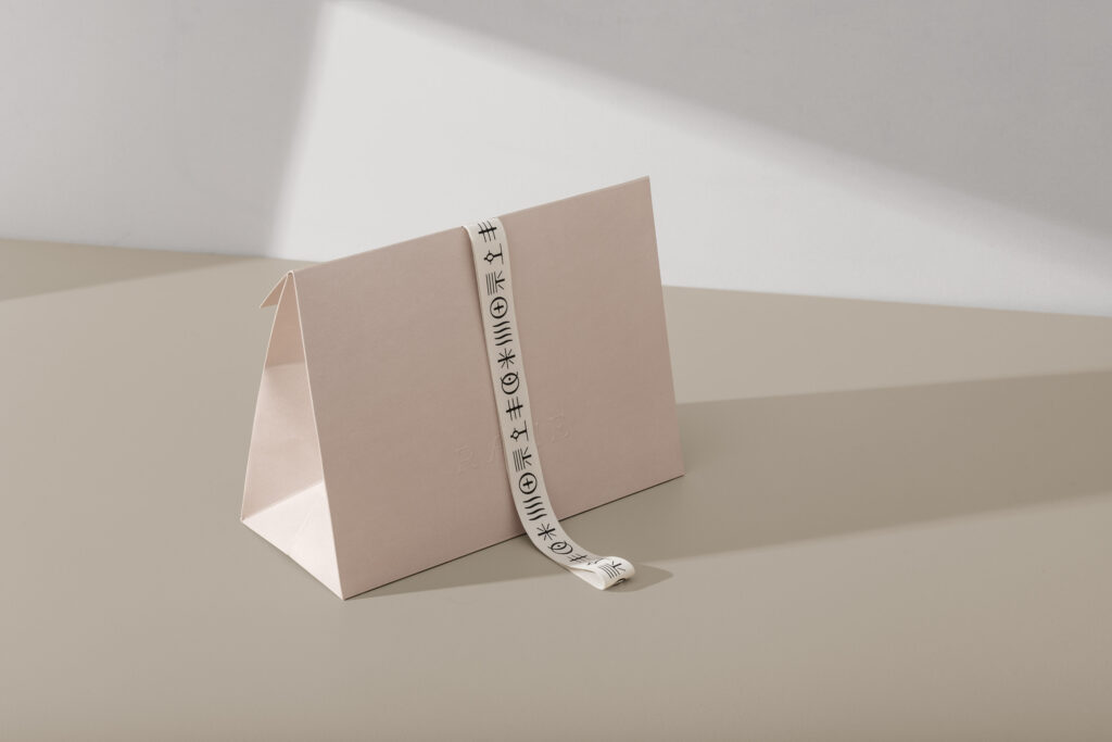 Working alongside RAAIE and Studio Lowrie, Porter produced a bespoke, limited edition bag for its Christmas gifting activity. Crafted from a robust 300gsm kraft paper, the bag follows the brand’s elegant neutral palette with a full coverage colour print, debossed all-over texture and understated embossed logos. A branded ribbon provides an elegant finishing touch, screen printed on a natural, undyed cotton grosgrain.