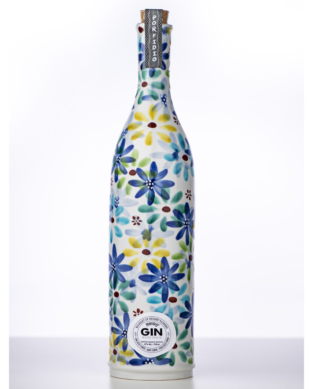The.Juniper.Tree by Porfidio | Thematic: Bouquet of Desert Flowers (agave flowers + pitaya cactus flowers + tuna cactus Flowers + juniper) | Japanese porcelain bottle with hand-painted flowers that reflect the liquid within | this porcelain design is characterized by its vibrant colors, as representative of all flowers that grow in the desert