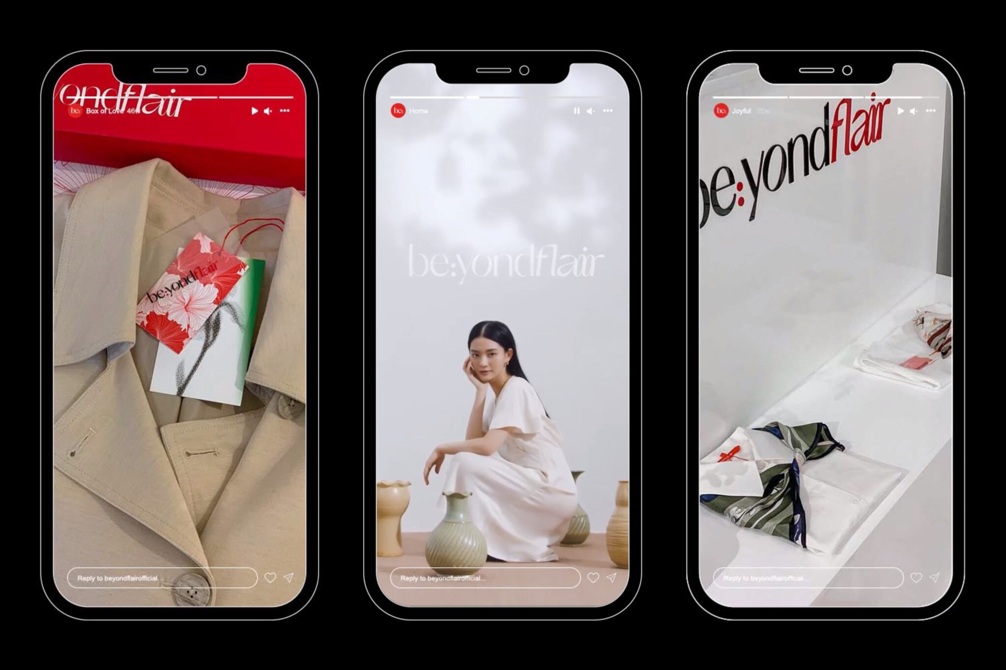 Our goal is to push beyondflair away from fast-fashion and towards a more refined position, while maintaining its feature of accessibility. The experience created by our design team functions to communicate that beyondflair is a lifestyle rather than just clothes. Confidence and elegance are an aura that beyondflair believes every woman can access with their products.