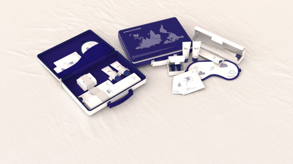 The Attaché, which is short for “briefcase” in India, is an idea for an Airline Amenity kit that looks like a tiny version of a briefcase. Using IndiGo Airlines as our hypothetical client – (Group Student Concept Project).