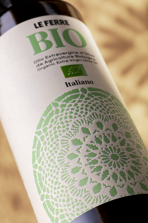 For the packaging of two extra virgin olive oils that identify two productions and regulations, representative both of a territory (Apulia, southern Italy) and a certified supply chain (organic), has been created a label that express the common identity of the two olive oils: respect for the authenticity of product and its production.