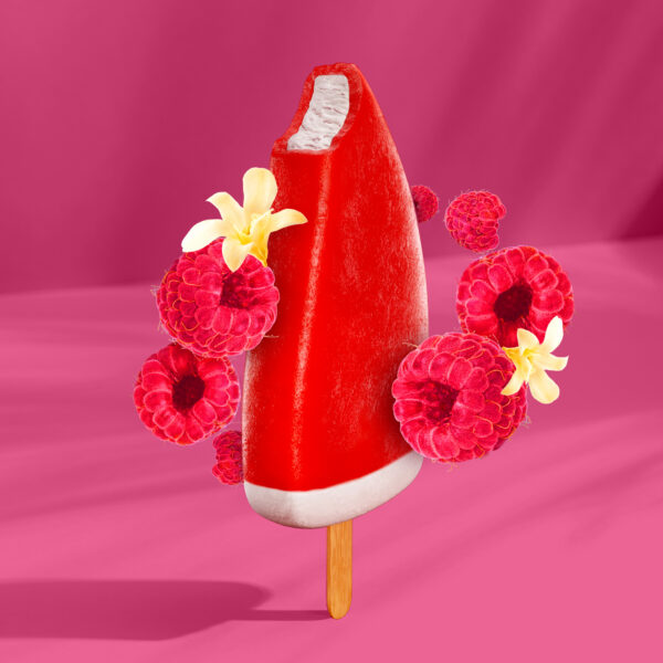 We wanted the packaging design to truly reflect the deliciousness inside so consumers could relish the ice cream before even opening the wrapper. We produced a realistic 3D airbrush food shot from scratch to amplify the vibrant colors, the nostalgic textures of the fruity outer shell, and the richness and smoothness of the creamy inner filling, bringing the ice cream to life through its packaging.