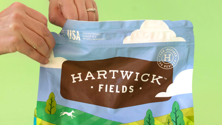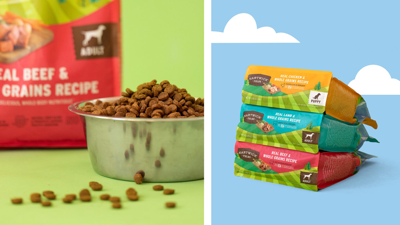 Hartwick Fields is a private label dry and canned dog food offering from Pet Supplies Plus. Launched to provide a gourmet-inspired option in the natural grocery section of the specialty store, this new product offering focuses on real, purposeful ingredients for pet parents who seek delicious entree-inspired options for their dogs. An easy-to-navigate color/icon system and idyllic country imagery pair with human-grade food photos to help the Pet Supplies Plus neighbor find the perfect recipe for their pooch.