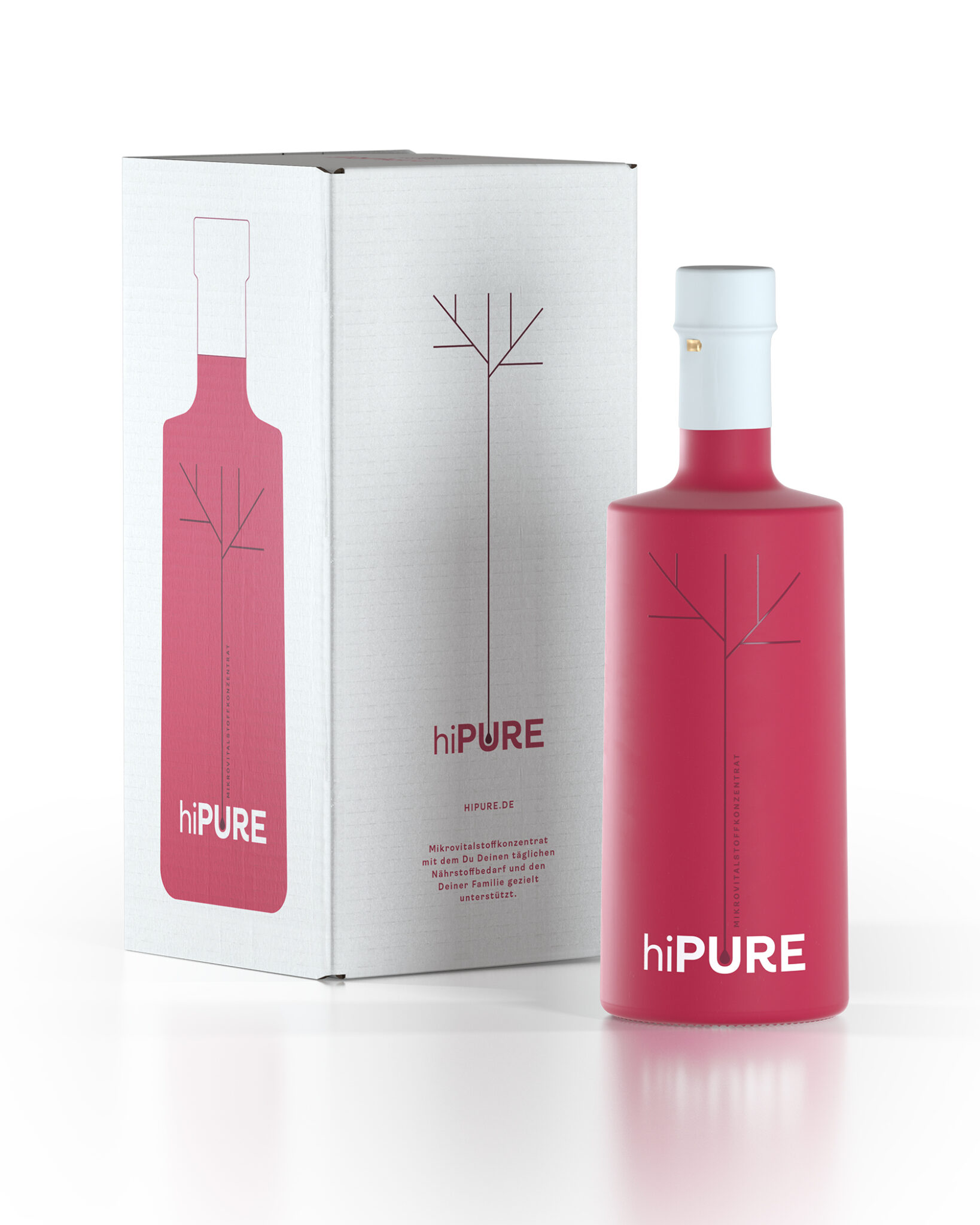 hiPURE is a scientifically developed “Mikrovitalstoffkonzentrat” (microvital substance concentrate) based on various juice concentrates. A brand and packaging design was needed for this. The brand and packaging should reflect the innovative power of the product. To put the hiPure brand on the market for the first time, we developed a design that stands out from the usual nutritional supplements. Science, taste and high-quality design appeal to the academic and demanding target group. The multi-faceted and striking design conveys the product promises across all brand assets and gives the brand a distinctive look. hiPure: The essence of everything good in one drop.