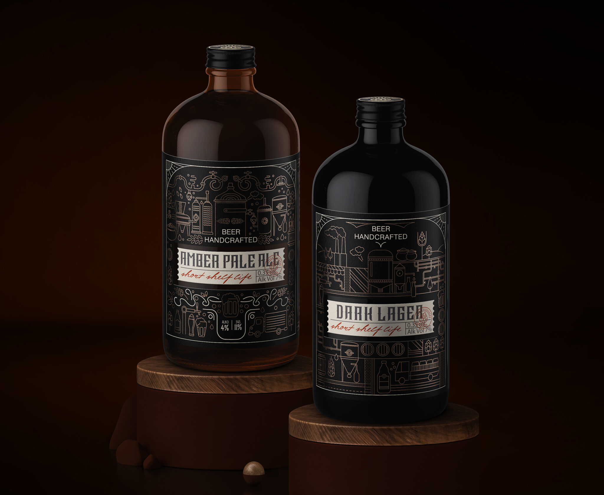 Only specialized craft beer stores and pubs were selected as sales points. The design solution was based on illustrations of the brewing process with an emphasis on the quick delivery of freshly brewed beer. The overall design style emphasizes the craft character of the product.