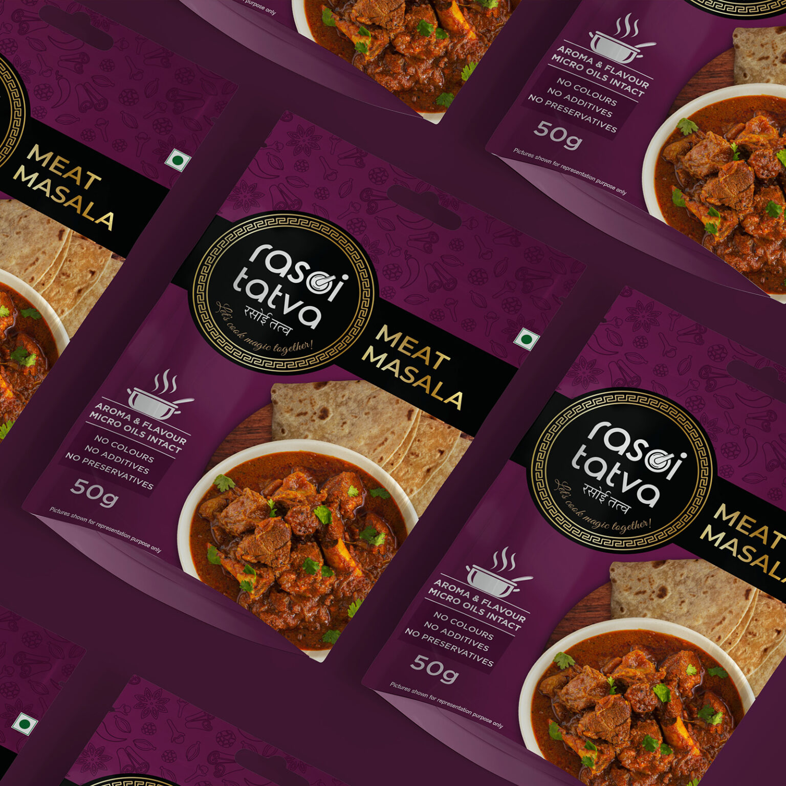 Our team named the brand “Rasoi Tatva” meaning “Kitchen Elements” – the perfect representation of how essential spices are to cooking. And our packaging design was crafted with the Indian market and target audience in mind, ensuring a stunning visual impact that captures attention. People are taking note of Rasoi Tatva – the spice brand that’s adding a touch of magic to kitchens across India!