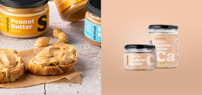 Venhel Nut Spreads Posted on March 2, 2023May 9, 2023 Condiment Food Snacks Spread 3218981 Submitted By: MAISON D'IDÉE Prague V Chotejne 765/15, 102 00 Prague Hostivar, Czech Republic Various nut spreads with letter-based packaging designs Two letters are enough to bring this packaging design to life. We love it and it works really well!