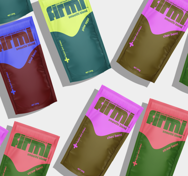 Firmi™ is a product concept for a recent client pitch for slimming powder smoothie premixes, the premise behind the name is a firmer body with the product being low sugar and low cal. The minimal graphics and 2 colour way would go up against a fruit graphic saturated market with a mess of illustrations and information overload on the front of packs, the products information will all be on the rear of the packaging to cut the clutter and let the bold colour and name tell the story.