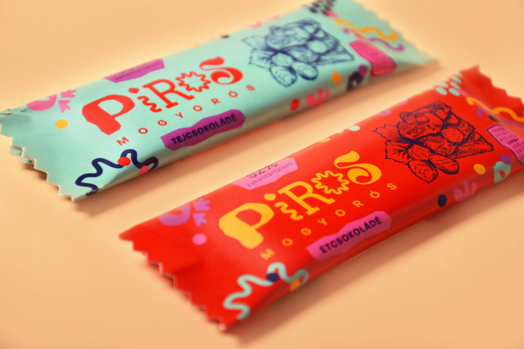 Piros Mogyorós is a popular Hungarian chocolate brand. “Piros” means red and “mogyoró” means hazelnut. These chocolate bars contain whole hazelnuts, making them incomparable with their competitors in the Hungarian market.