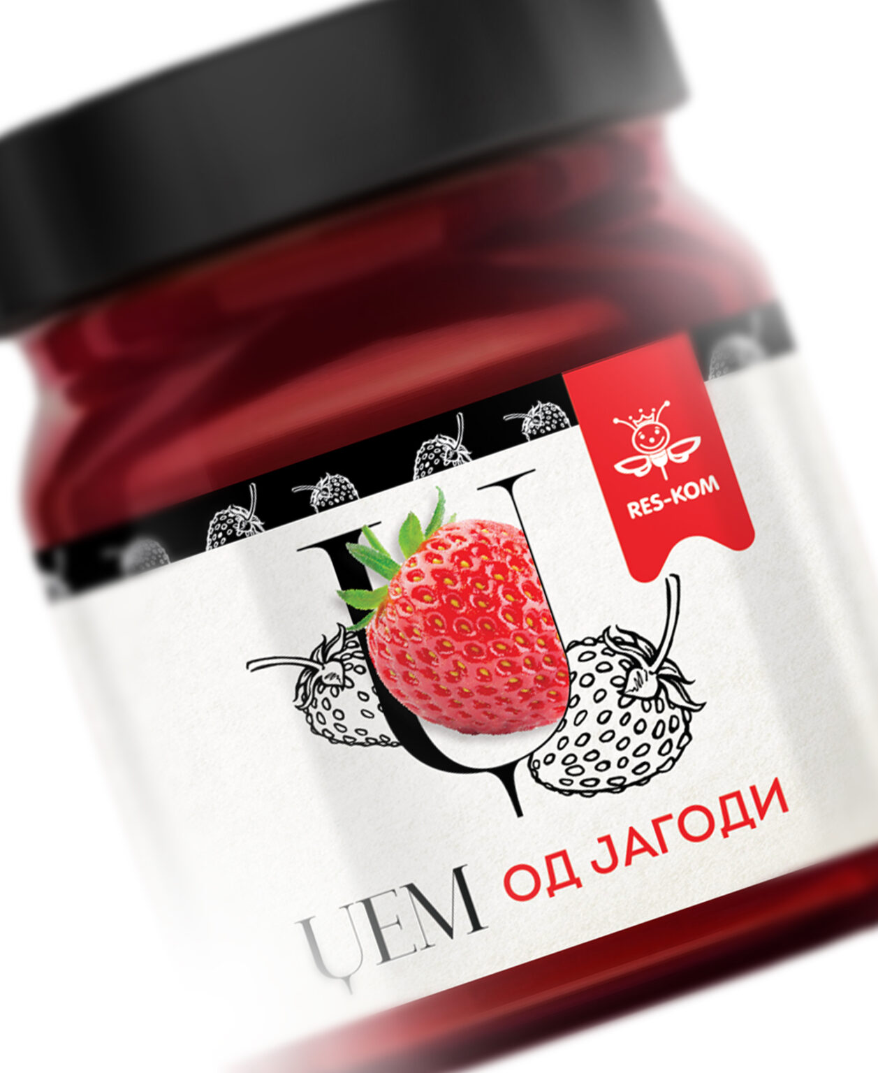 Џ jam by Res-Kom Posted on May 30, 2023May 30, 2023 Condiment Food Spread 47581590 Submitted By: Dalibor Smileski Џ jam is a premium jam produced by Res-Kom. The design is simple and typographical. The Cyrillic letter Џ is the first letter of the Macedonian word ЏЕМ (jam) and it is used as the focal point of the design.