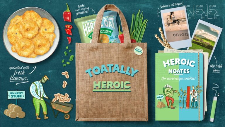 We have partnered with two Irish entrepreneurs to create a new to world healthy oat-based snacking brand, The Heroic Oat. We created the name and developed the brand strategy and brand identity for the new venture. The brand launched in 2022 and is now available in leading convenience stores, forecourts and health food shops throughout Ireland with launch in the UK expected in 2024.