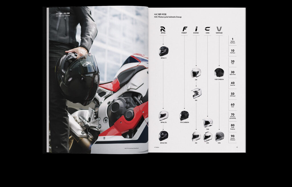 HJC, which has made the best motorcycle helmet since its foundation in 1971, celebrated its 50th anniversary. The title of the book “Race to Perfection” shows that it contains a vision and calling for the path HJC has taken over the past 50 years and the way ahead. We have worked on the project based on HJC brand analysis for a considerable amount of time. The HJC project, which started in 2020, was completed in 2021.