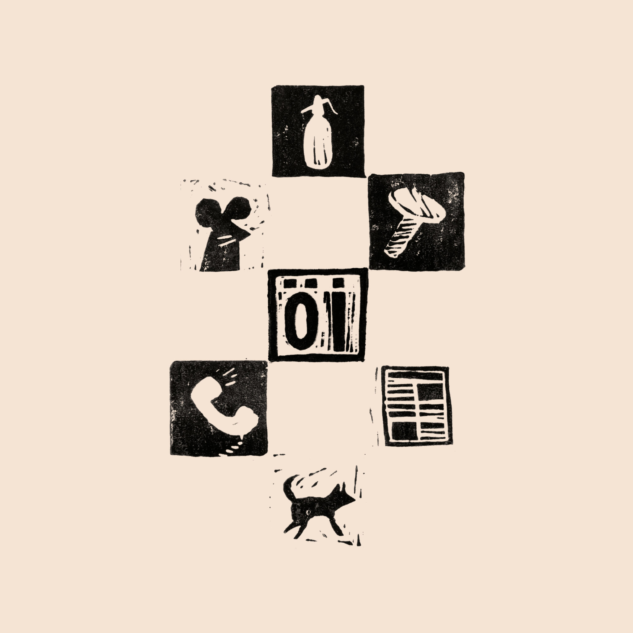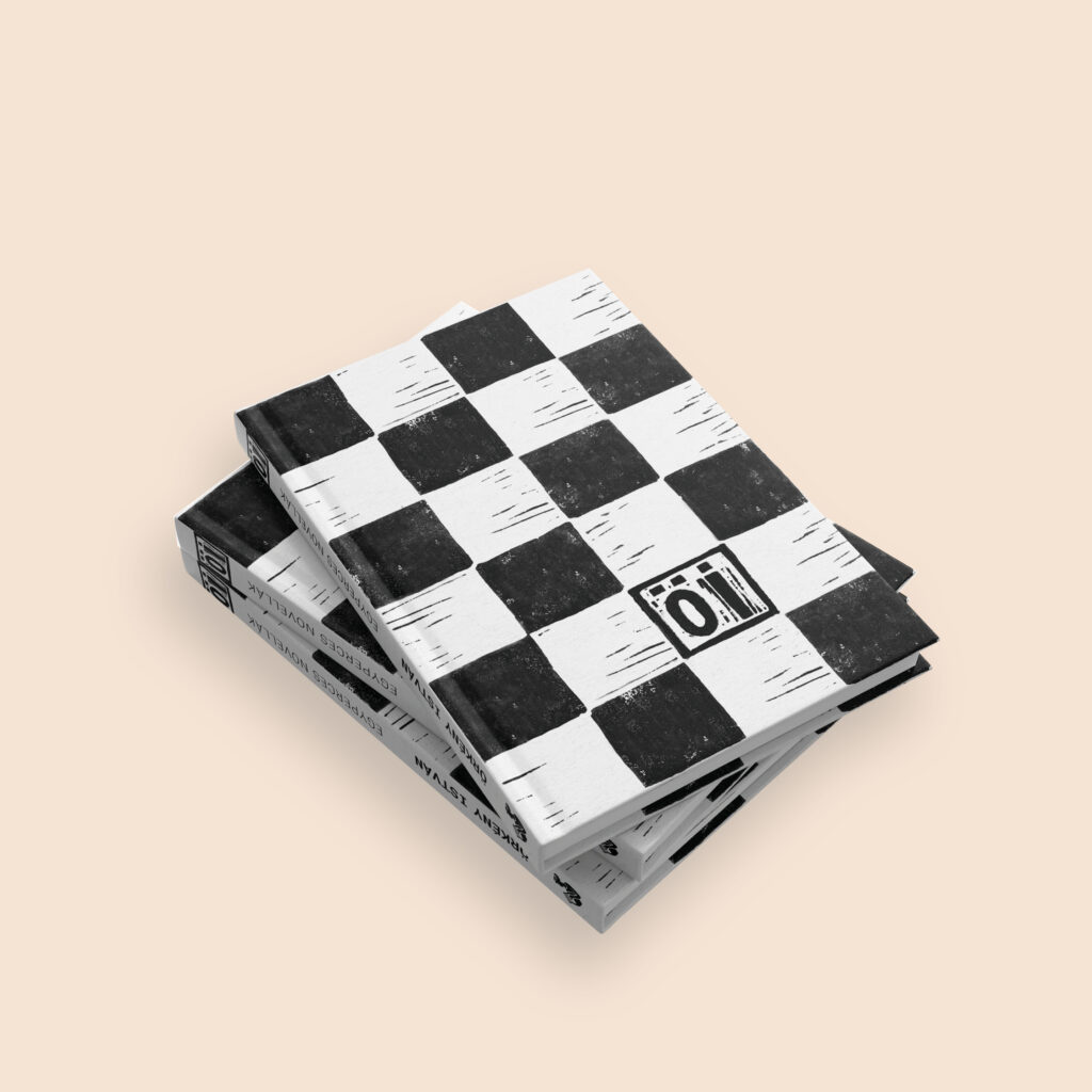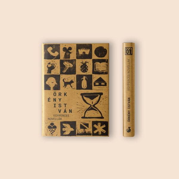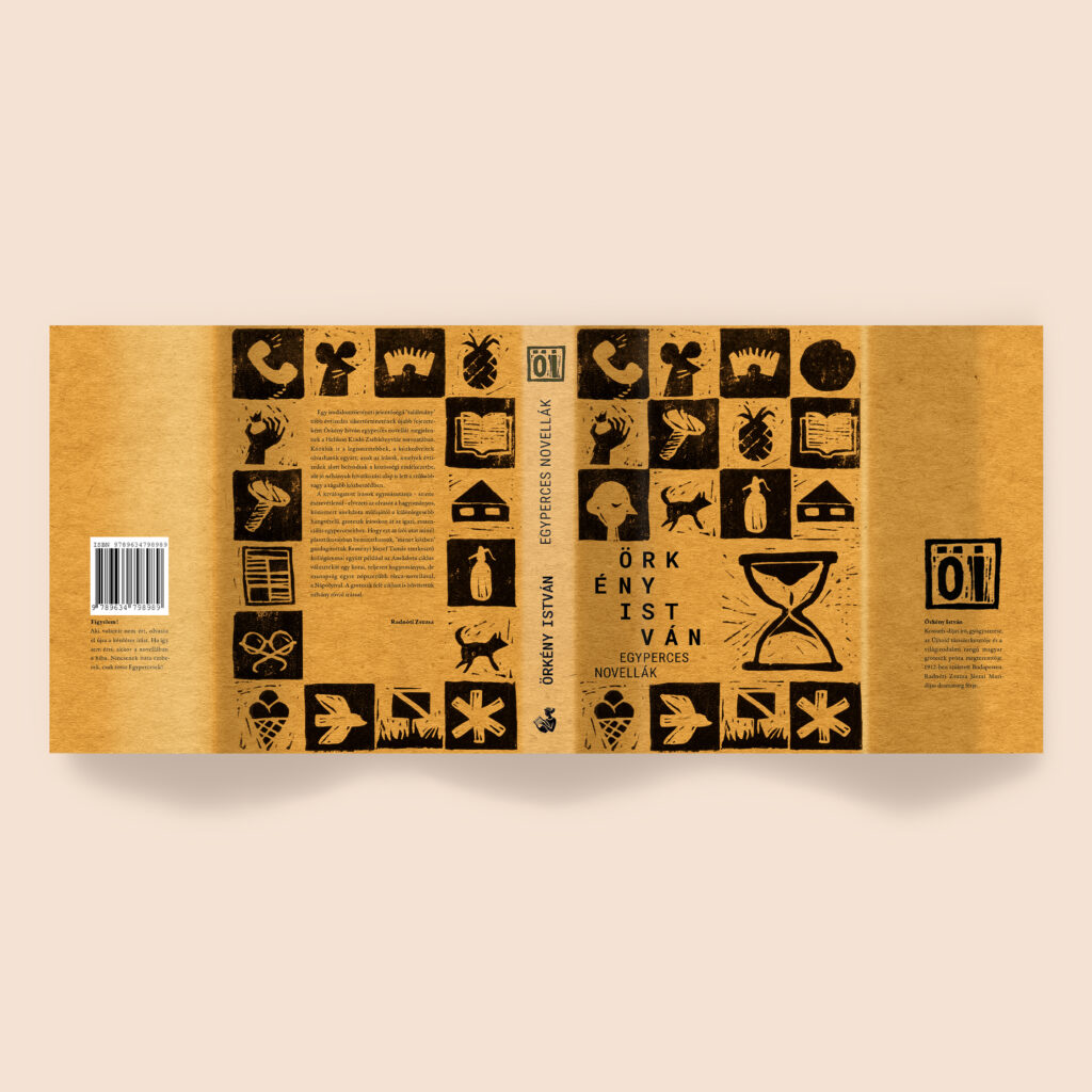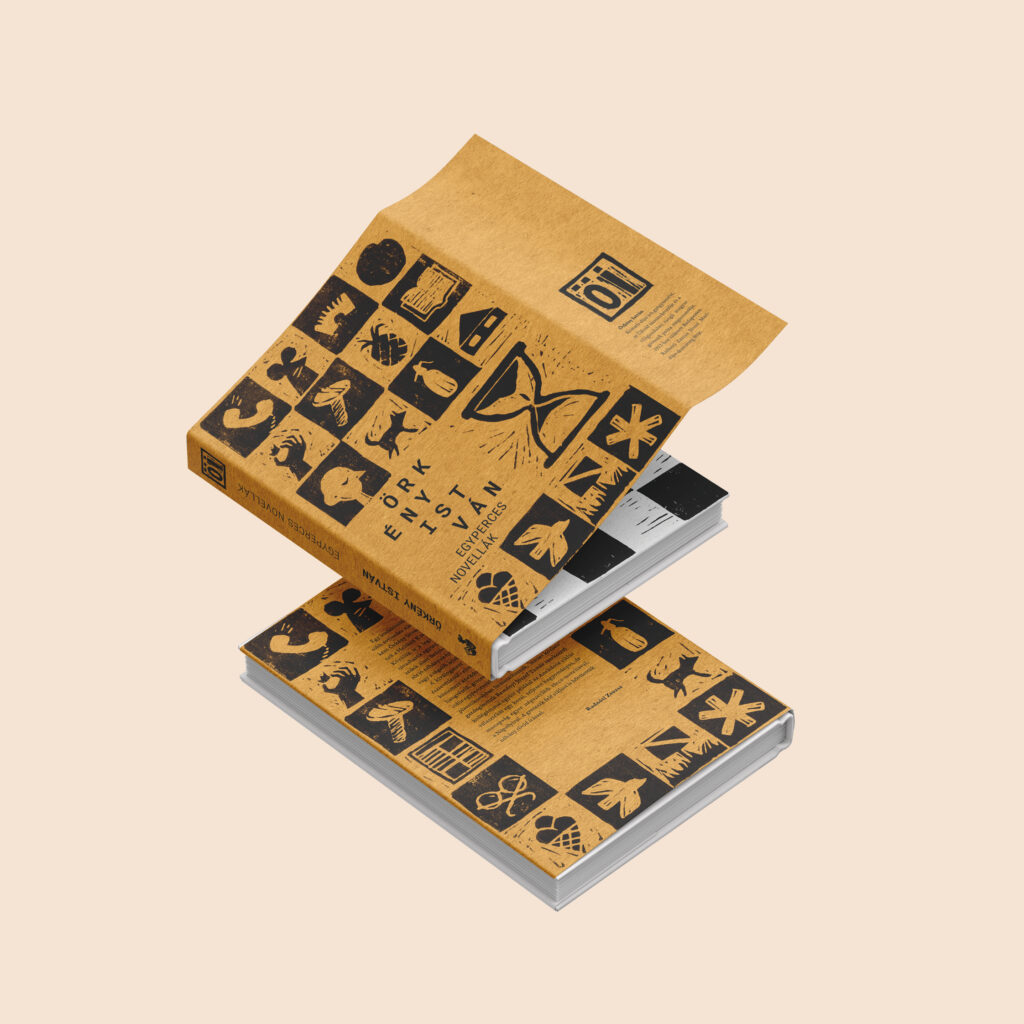Istvány Örkény’s One Minutes Stories is a staple of Hungarian humor. Written in 1968, in an age of censoring authors, the sorties length is confined to the limits of Örkény’s time to write while working in a chemical factory. The stories paint a grotesque picture of society and ordinary life. The stories length and humorous tone are the qualities I wanted to highlight on the cover design and on the pages. On the cover I designed a chess board-like structure, built up from small 2×2 linocut icons of the stories, therefore illustrating the quantity of stories in the book. The author’s name and the chapter titles are organised in letter-matrixes and by oddly dividing them up into rows, making the hardly legible, I wanted to make the reader think outside the box, preparing them for the sense of dry wit they’ll need to understand the following anthology.